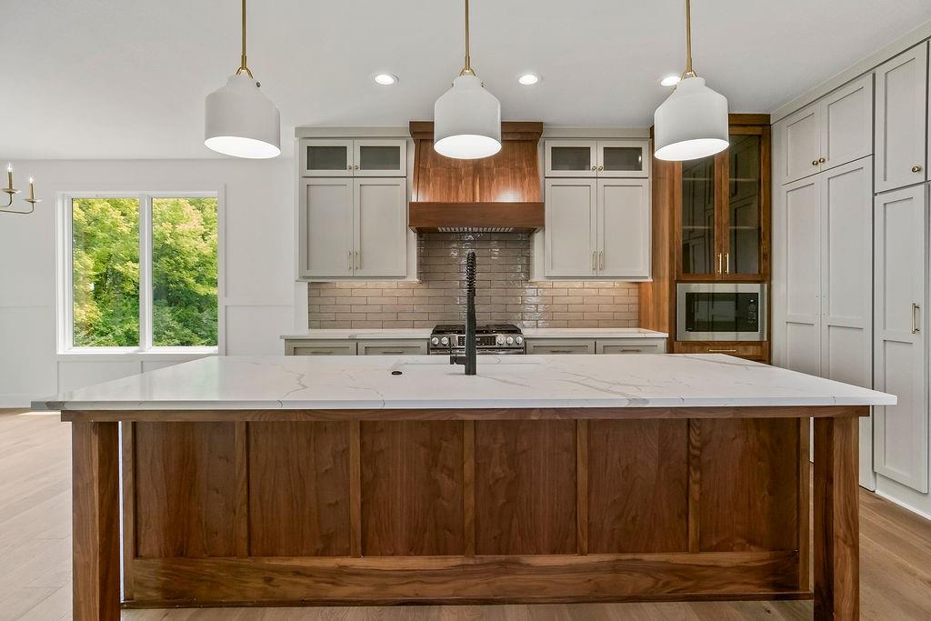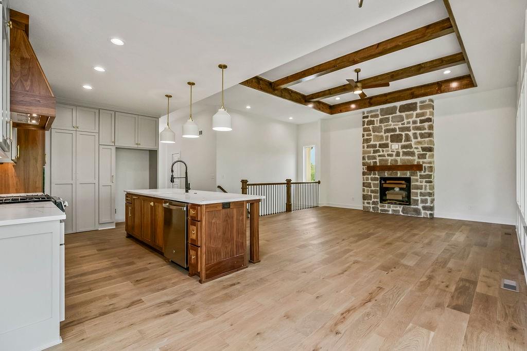 Highly sought after "Grant" plan by Heartland Developments, expanded and ready in 30 days! This true ranch features 3 beds and 2 baths on the main floor with a finished lower level. Oversized great room with tons of windows, hardwoods and floor to ceiling stone fireplace. Incredible kitchen with 9' island, custom walnut cabinets, GE appliances, hidden pantry and quartz tops. Master suite with double vanities, walk in shower and huge closet. Finished lower level with huge rec room, full bath, additional bedroom and bar with island. Plenty of unfinished storage too! Home sits on a great irrigated lot backing to treed green space.