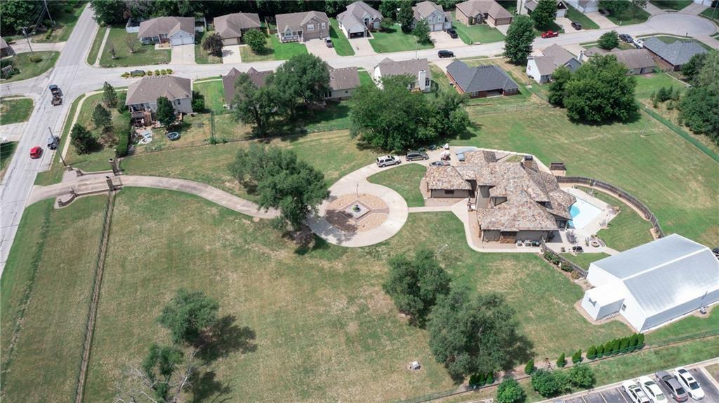 Exceptional Estate Near UCM!! Discover this exceptional, one-of-a-kind home on 3.36 acres within city limits, just steps from UCM. This luxurious residence features a stunning stucco, brick, and stone exterior with a slate roof and copper accents. Inside, enjoy 8ft doors, 10ft ceilings, crown molding, and Pella designer windows. The home offers 6 bedrooms, 5 full baths, and 2 half baths. The grand main floor includes a spacious entry, hearth room, formal dining, and a gourmet kitchen with granite countertops, an island, walk-in pantry, and stainless steel appliances. A breakfast nook shares a double-sided stone fireplace with the hearth room, and a sunroom provides a kitchenette/bar and entertainment space. The main floor also hosts a lavish master suite with dual vanities, a dual-head walk-in tile shower, jetted tub, and a giant walk-in closet, plus a guest bedroom and full bath. Upstairs, find three large bedrooms, one with an en-suite bath, and two sharing a Jack-n-Jill bath, all with walk-in closets. The walk-out basement boasts a family/rec room with a wet bar and fireplace, a large bedroom, a full bath, a dedicated tornado/storm room, and an office/craft room, alongside extensive unfinished storage. Adding to the property's appeal is a 40x60 shop/guest house with 1700 sq ft of finished living space (including a kitchen, full bath, and laundry) and 800 sq ft of unfinished storage. The outdoor oasis features a private, wood-fenced in-ground pool and patio entertainment area. This home also has a gas line ran to the fire pit and by the pool to add a gas heater or fire pit. There is also an additional line ran off of the main line to the septic for easy hook up to city sewer if desired. If a lawn watering system is desired the well still remains for low-cost watering. Seller will also be willing to trade for investment property for all of part of the sale. Come on let's make a deal!!