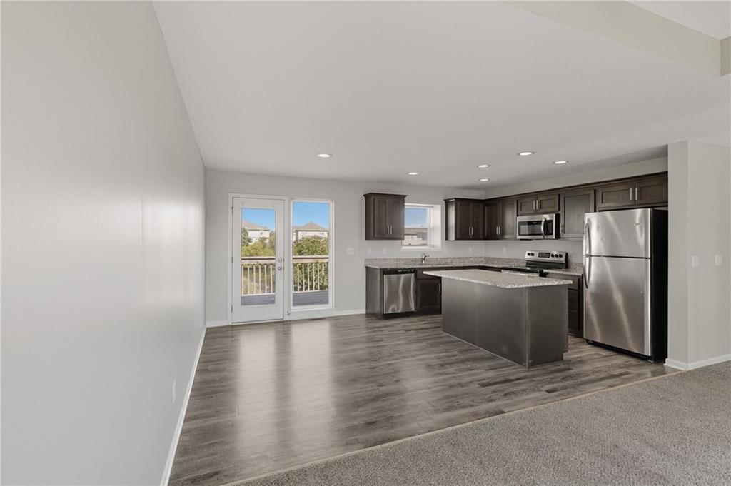 Enjoy comfort and style in this inviting 1-story home with a full finished basement and 2-car garage. The open floor plan features a spacious kitchen with a large island, stainless steel appliances, and accent lighting that adds a modern touch. The primary suite offers a double vanity and generous closet space. Step out onto the wood deck and take in peaceful views of the pond, grassy area, and surrounding neighborhood. A perfect blend of indoor and outdoor living—schedule a showing today!