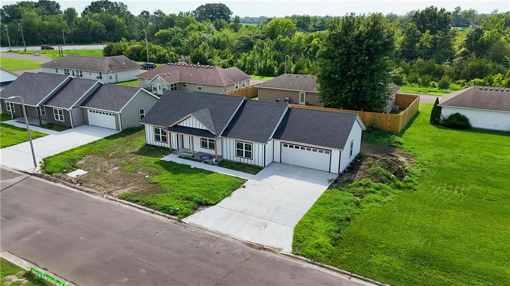 Brand New Ranch style home built with quality and attention to details. Covered front porch leading you to an open floorplan living space with large living room, vaulted ceilings, recess lighting and water proof vinyl floors throughout. Great kitchen with island, granite counters, oven/range, built in dishwasher, microwave and eat in area with sliding glass doors to patio. Master suite with oversized walk in closet and full bathroom. 2 more bedrooms on the main level and second full bathroom nearby. Laundry/mud room leading to a 2 car attached garage. Central heating and cooling system with heat pump, vinyl thermal pane windows and engineered wood siding. Located on the edge of town, surrounded by newer homes and easy access to 50 Hwy and walking distance to grocery store.