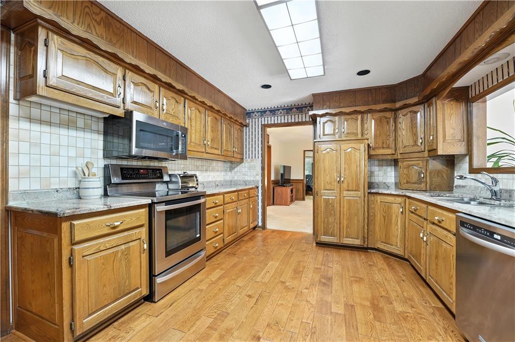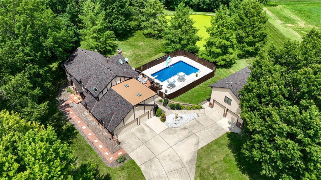 If you've dreamed of owning a home with an abundance of space for your whole family, a bit of beautiful treed acreage, a sparkling gem of a pool, plus a matching garage/carriage house...your dreams can become reality! You must see & experience this picturesque property & explore all the magnificent features it has to offer. The spacious main level provides a large living room & sitting room, nice office spaces, a formal dining space, plus a lovely breakfast room & sunroom situated just off the kitchen as well as a super convenient walk in pantry, extra storage closets, & a full bathroom. The upper level offers 3 big bedrooms with extra large closet space, an enormous primary suite with all the space you could ever hope for, nice bedroom level laundry room, large loft area, & a bonus multi use room for the hobbyist, the artist, the novelist, a guest bedroom, or just a really great space to hold all of your special stuff. The fully finished lower level is perfect for family fun nights with movies & games & boasts a full kitchen for the ultimate convenience, plus a full bath, a non conforming bedroom & a special hidden play nook. If you're wanting the greatest & cleanest garage space in the world, look no further because this home has 4 attached garage spaces (3 on the side & 1 around back by the pool) AND a fantastic detached 20x40 matching garage building with 3 more spaces, a 1/2 bath (that's perfect for the pool guests), plus separate living quarters above adding 1200 sq ft more living space, complete with a living room, kitchen, full bath, & another big bedroom suite. You'll love the brand new roof, pool liner, & newer zoned HVAC system to take the heavy lifting items off your shoulders. The park like, almost 3 acre setting, lavishes you with your own personal retreat away from the hustle & bustle of the city but with all the conveniences of food, shopping, schools, nature trails, lakes & parks close by. Come see this beauty & make yourself right at home!