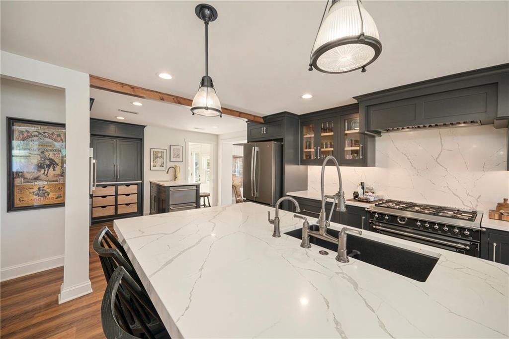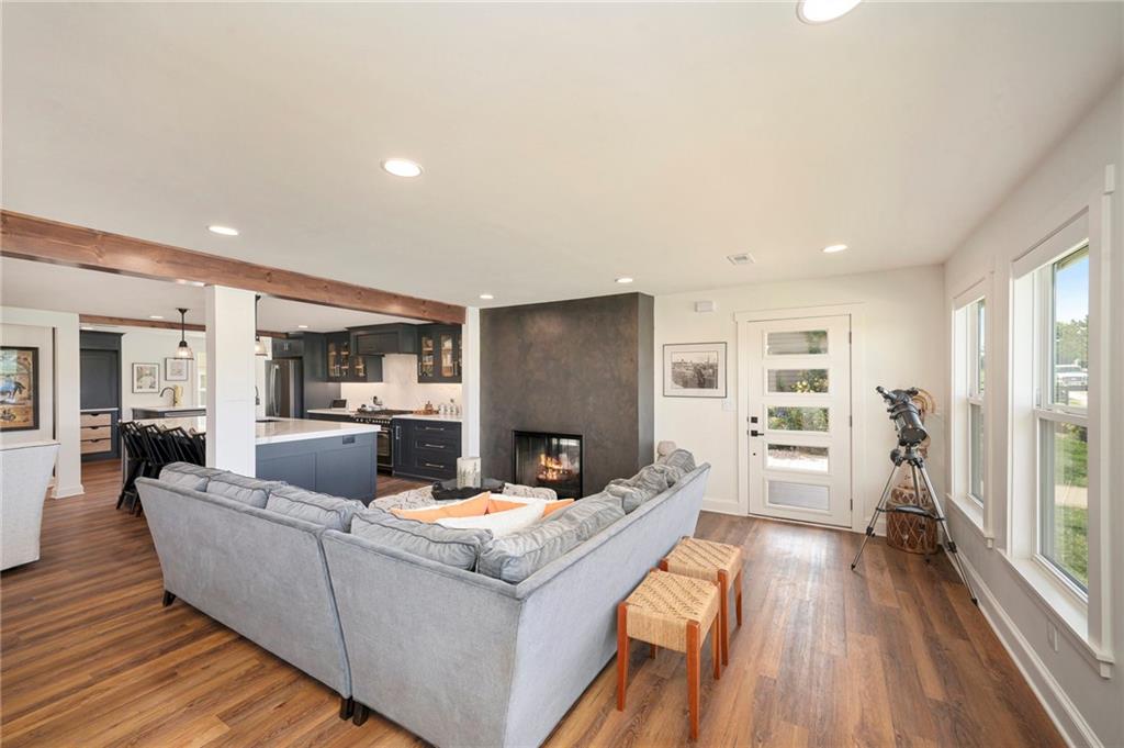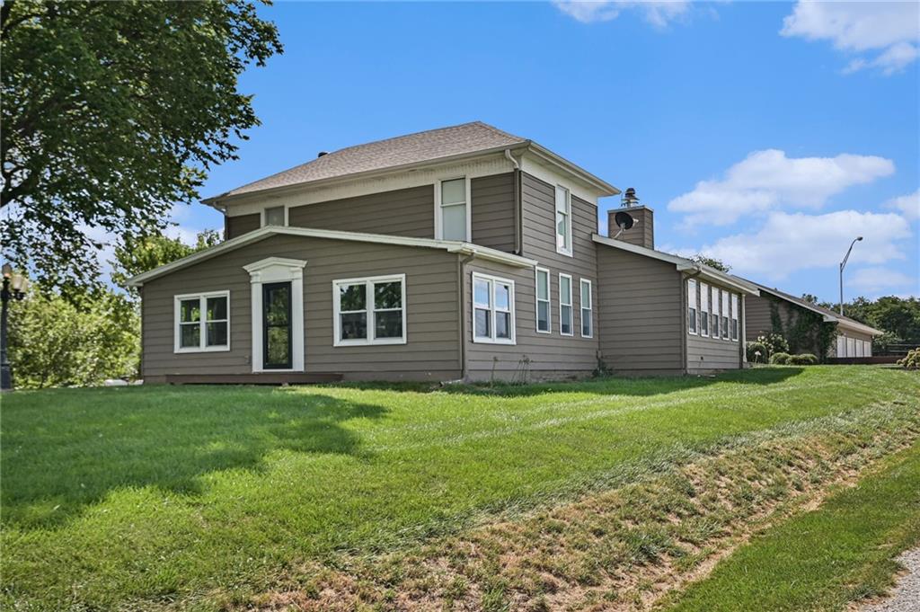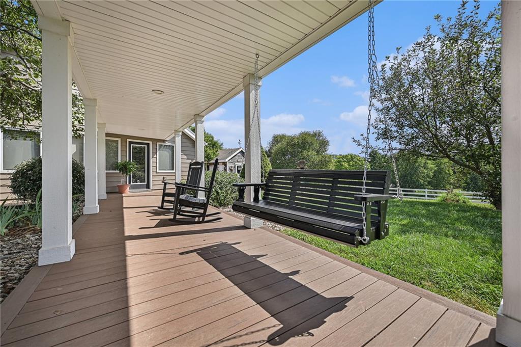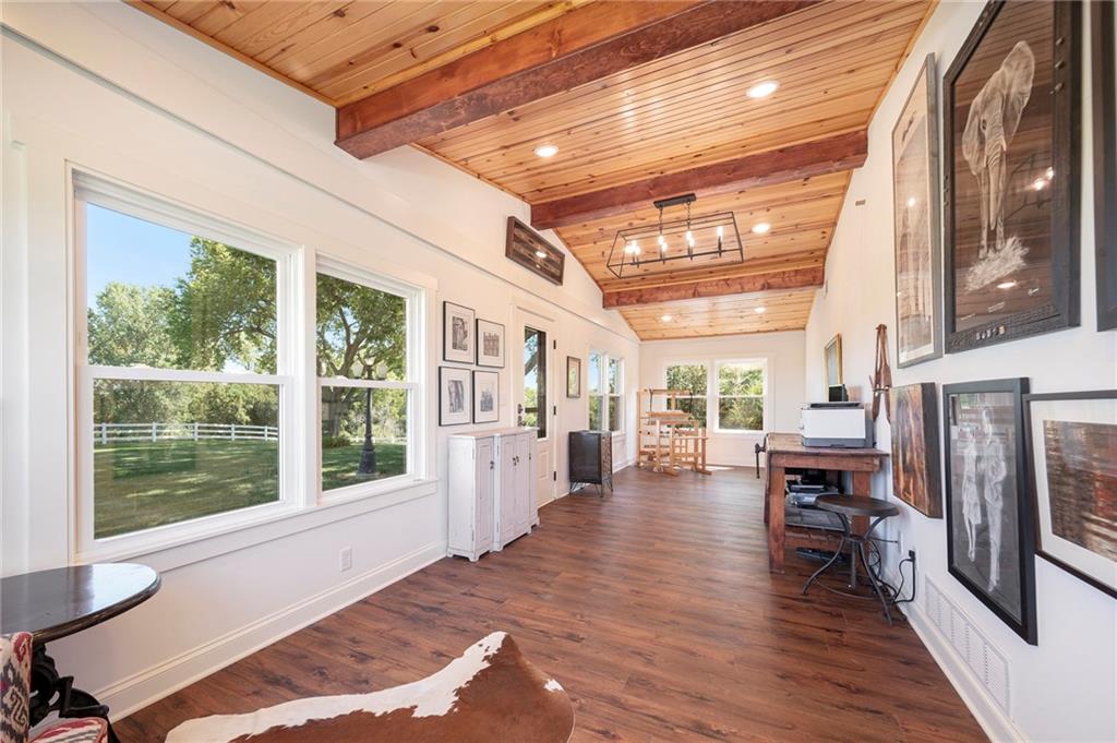 This gated property offers a unique blend of tranquility and modern living, situated on 29 picturesque acres with breathtaking views, including a 6-acre pond. The landscape features rolling hills and a variety of fruit trees, including apple, cherry, plum, pear, and peach. The equestrian enthusiast will appreciate the 7-stall horse barn equipped with electricity, a sheep barn and tractor barn, providing ample space for all your needs. A 4-car detached garage with large doors, perfect for SUVs and trucks, featuring a convenient 1/2 bath and an 8x12 concrete storm shelter for added safety. Enjoy outdoor living with covered patios and walkways leading to the garage, perfect for entertaining or relaxing. The home itself has been completely remodeled, featuring all new wiring and plumbing, a stunning kitchen with custom cabinets, high-end appliances, a butler's pantry area that any chef would adore. The primary bath and closet have also been fully renovated. The home features a newer roof, new HVAC , new windows, combining the charming character of an old farmhouse with the modern conveniences of today. The property is powered by GEOTHERMAL energy ensuring efficiency and sustainability. The pond is complete with a dock & stocked with bass, crappie, perch, and catfish. Experience the best of country living while being conveniently close to amenities and the airport. Don't miss this opportunity to own a slice of paradise!