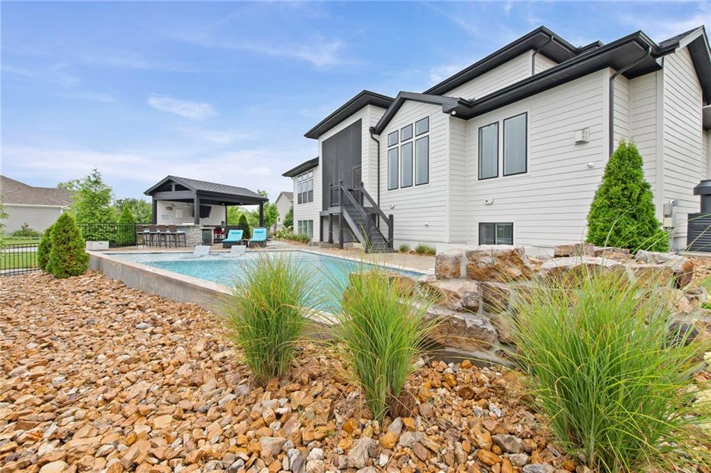 **MOTIVATED SELLER**LIKE NEW**THIS HOME IS FULLY LOADED & READY TO ENJOY TODAY**AMENITIES AMENITIES AMENITIES**Elevate your lifestyle in this extraordinary, one-of-a-kind custom-built home, nestled in the esteemed Century Farms community. This stunning 7-bedroom, 6 full baths, 2 - 1/2 bath, 4 car oversized garage (1170 sq ft) estate boasts 3 floors of finished space! The main floor showcases a grand 2-story foyer, curved staircases both up and down, 2-story great room that includes fireplace w/ stone to the two story ceiling, prep kitchen, huge mud room w/ tons of lockers, hearth room that includes fireplace w/ stone to ceiling, office/bedroom an exceptional master suite with a spa-like bathroom, and expansive closet w/ large island and laundry, all w/ 8' tall doors! The upper-level features hallway-built ins, 2nd laundry, 4 additional bedrooms with full baths and walk-in closets, plus the 4th bedroom is raised w/ double doors and pocket doors that can overlook the great room (this room is a loft or bedroom suite). The lower level is an entertainer's paradise, complete with a home theatre, wet bar w/ island, game room, home gym, an additional bedroom, full bath and walk in closet, 2 unfinished spaces for plenty of storage. Outside, enjoy the covered screened in deck that includes 3rd fireplace w/ stone to the ceiling, sunken patio w/ hot tub , fenced in back yard (w/ grass area to enjoy or for your pets), pool bath and storage area (great for pool equipment, popsicle freezer and floaties), heated gunite pool w/ sun deck, bubblers, firepit and boulder feature that includes a waterfall!! To finish the amazing outdoor space there is a separate structure that covers the outdoor kitchen & bar giving you privacy and relaxation for your next game! This true masterpiece is ready for you to make unforgettable memories.