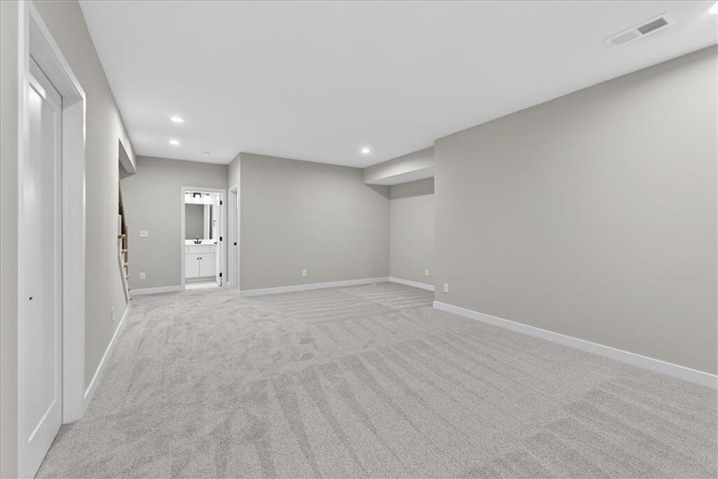 SLASH YOUR MONTHLY PAYMENT! Unlock $20,000 in combined builder and lender incentives to buy down your interest rate and save hundreds on your monthly mortgage! This $10,000 Lambie Homes incentive PLUS a $10,000 lender credit (available through 04/30) makes luxury living in Mize Hill more affordable than ever. The main level greets you with soaring ceilings and a modern "greige" color palette that feels incredibly bright and airy. The great room serves as a true centerpiece, anchored by a show-stopping floor-to-ceiling white sawtooth ledge stone fireplace with a 40" Allusion electric insert. For the home chef, the gourmet kitchen is a dream, featuring custom beveled shaker cabinetry, sparkling quartz countertops, and elegant under-cabinet lighting. Retreat to the main-level primary suite, complete with a massive walk-in closet that offers direct access to the laundry room for ultimate convenience. The finished lower level expands your living space significantly, featuring a large family room perfect for movie nights and two additional guest bedrooms. Enjoy the best of Lenexa with walking trails, a future community pool, and close proximity to Mize Lake, all while the HOA handles the lawn and snow. This spec home is finished, beautiful, and priced for an immediate sale!