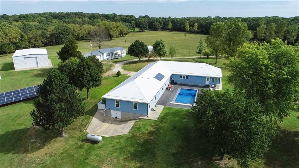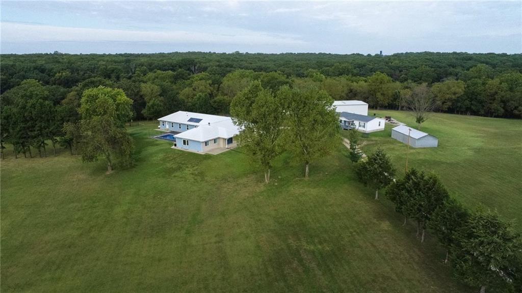 Welcome to your dream property! This stunning 80-acre estate features not one, but three beautiful homes, offering a unique opportunity for multi-generational living or rental income potential. The main home is an entertainer's paradise, boasting a state-of-the-art home theatre, an in-ground heated and cooled pool with a carpeted pool deck for ultimate comfort, and a gourmet kitchen equipped with a 6-burner gas stove and elegant granite countertops. This eco-friendly residence features a state-of-the-art solar panel system that significantly reduces your carbon footprint and energy bills. Enjoy the peace of mind that comes with backup batteries, ensuring a continuous power supply even during outages or periods of low sunlight. The luxurious master suite is a true retreat, featuring private access to the pool, a relaxing jacuzzi bathtub, and a spacious walk-in shower. Three additional large bedrooms and a huge family room provide plenty of space for family and guests. The second home is a comfortable 3-bedroom, 2-bath manufactured home with a covered deck, perfect for enjoying the serene surroundings. The third home is a charming cottage-style residence with a large loft-style bedroom and a room on the main level, offering versatility and character. Nestled adjacent to U.S. Army Corps of Engineers land, this property offers unparalleled access to vast, untamed wilderness, creating a haven for wildlife enthusiasts and hunters alike. The area is teeming with deer, turkey, and small game, making it a true hunter's paradise. Imagine stepping directly from your property into thousands of acres of managed land, where the opportunities for outdoor adventures are endless. This unique feature not only expands your playground but also ensures the preservation of the natural surroundings, promising years of undisturbed enjoyment and exceptional hunting experiences– a true must-see!