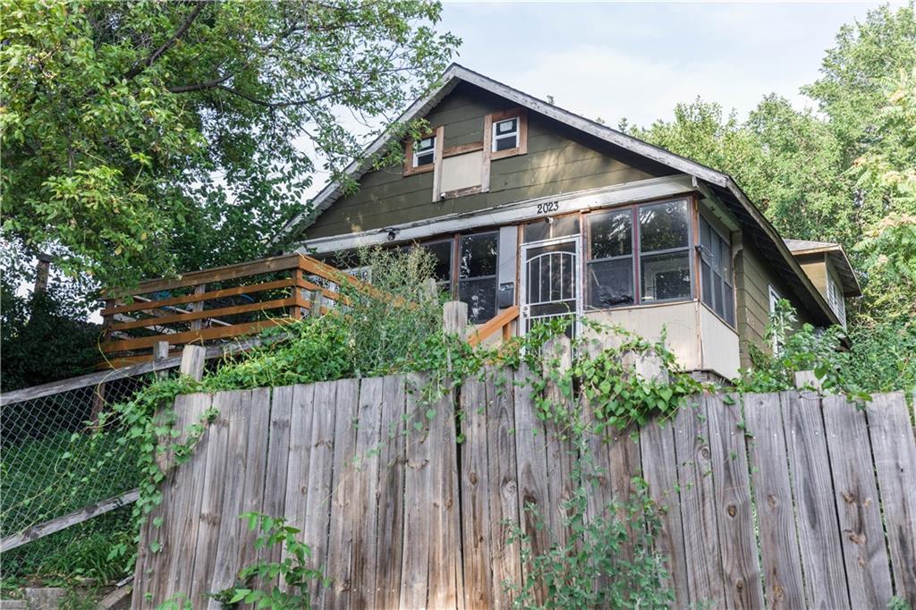 Bring your renovation ideas for this 3 bd/1 bath 1.5 story bungalow with much potential and character! Updates in bathroom w/ ceramic floor tiling and bathroom vanity, kitchen with ceramic floor tiling, electrical panel upgraded. Two bedrooms main level and a third bedroom upstairs. Office/sitting area upstairs. Additional space upstairs to potentially add a fourth bedroom. Screened enclosed porch w/ front deck. Enclosed fenced parking on back of property. Property within driving distance to KCP&L/Downtown KC, the stadiums, the Plaza. Close hwy access.