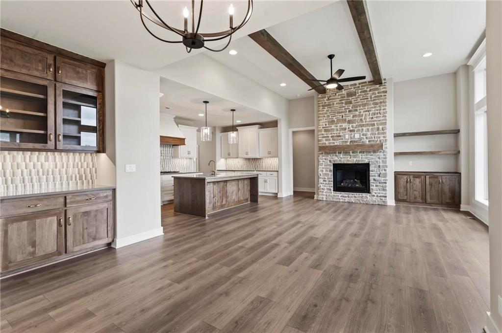 The "Ellenbrook II" Reverse by SAB Homes is here on a walkout lot with a covered deck & covered patio for amazing outdoor entertaining at its finest! As you enter through the grand covered porch into the foyer, you are drawn into the incredible natural light of the Great Room with a fireplace. The covered deck is off of the Great Room by the breakfast area for serene nights with your favorite beverage. The dining room is a splendid dining space just in from the front entry. The Kitchen has an island for your entertaining, ample counter space, S/S Appliances and walk-in pantry. The Primary En-Suite bedroom is tucked behind the Great Room. The primary bathroom has a soaker tub, double vanities and tile shower, leading into the walk-in primary closet. The main level laundry room next to the Primary hallway. Bedroom #2 has a walk-in closet and is on the opposite side of main level connected to a full bathroom with a shower over tub, that also connects to the mud room hall next to the entry from the garage. The lower level has 2 bedrooms, both with walk-in closets, full bathroom with shower over tub, Recreation Room, wet bar, half bath, ample storage and walkout to the covered porch to the beautiful back yard. All in the coveted Heritage Ranch, A Lambie-Rieke Community, with Amenities Galore such as state-of-the-art pool, clubhouse, trails, pickleball. play area, half-court basketball, Putting Green & ponds and so much more coming soon! This community provides a wonderful lifestyle and right next to the 1,238 Acre Heritage Park with Dog Park, Sports Parks, Golf, Lake, Trails and so much more! Contact Onsite Agents for Estimated Completion of homes on site, and design selections. Our Welcome Center Office is now open, located at LOT 65. Open 7 days a week! Welcome Home to Heritage Ranch - one of the last NEW Home Communities in Johnson County! SPEC HOME is Under Construction with an Estimated Completion JAN 2026 on LOT 68.