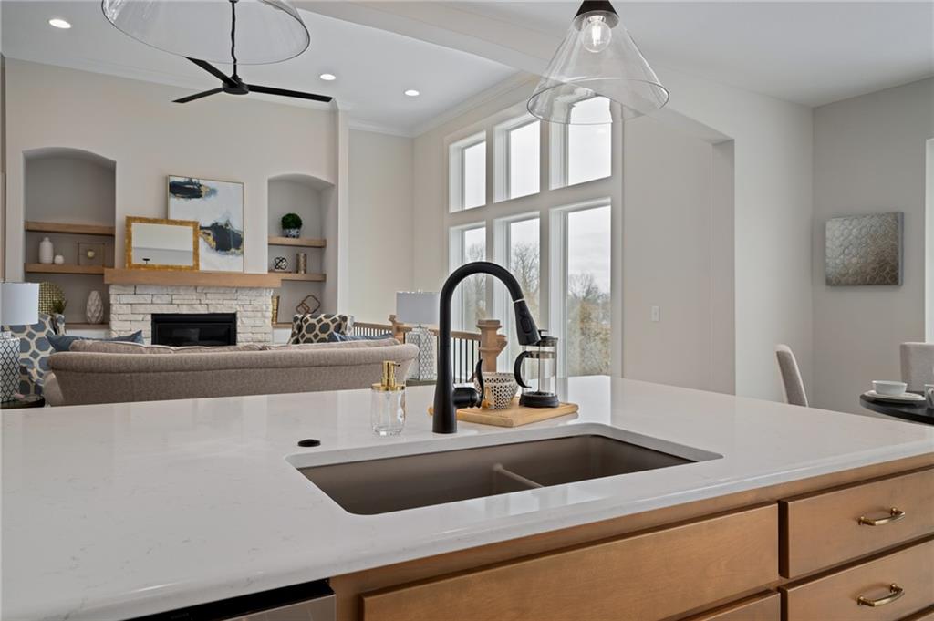 The HAMPTON VI Reverse 1.5 story by New Mark Homes is a standout plan with an inviting entry, tall ceilings, a wall of windows and a back staircase with a daylight lower level. Beautiful touches & details throughout. Kitchen has oversized island and gas cook top. Free standing tub in master bath. ***Home is in process and estimated completion in February 2026***Taxes are estimated. Pictures are of a similar home. Lakeview Ridge is a new build community just west of Lake Olathe with great homes started and fantastic lots available. POOL coming in 2026. You can get to the neighborhood off of Dennis & Houston with easy access from K7 or coming from Lakeshore. Our Sales Office is located 14271 Houston. Our development is right next to Lake Olathe and neighborhood feeds into Clearwater Creek Elementary, Oregon Trail Middle School and Olathe West High School.