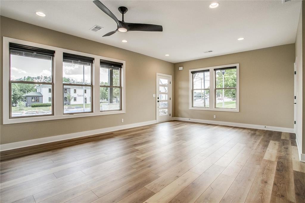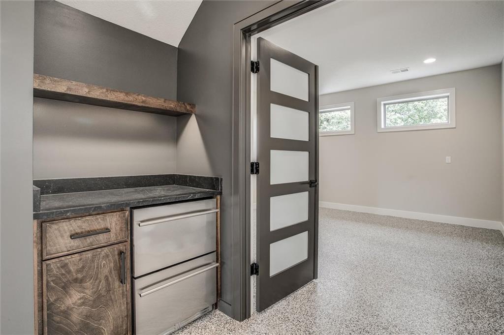 This extraordinary property offers a rare combination of a comfortable two-bedroom, one-bath residence and an expansive garage and loft designed for the collector, professional, or entertainer. The exterior makes a bold statement with black metal siding, Aspen dimensional stone accents, and metal roofing, enhanced by a deluxe landscaping package and sprinkler system. The centerpiece is the garage, providing more than 1,500 square feet of finished space with three oversized 12’ x 12’ doors and jack shaft openers for maximum clearance. Built with the enthusiast in mind, it can easily accommodate ten or more cars without lifts. Designer epoxy floors, wrought iron railings, high-intensity LED lighting, and a massive industrial fan highlight the space. The main level includes a guest bath with custom steel sink and tile splash, a dry bar with dual-drawer refrigerator, a flex room with French doors, and structural concrete floors ready for lifts. Comfort is ensured with a separate heating and cooling system, humidifier, 50-gallon water heater, and even a 240V RV outlet. Overlooking it all, a dramatic entertainment loft provides the perfect vantage point for showcasing a collection. This inviting space includes a full bar with granite tops, sill sink, ice maker, dual refrigerators, custom cabinetry, and distinctive finishes, making it ideal for entertaining or relaxing. The living quarters feature two bedrooms with ceiling fans, a hall bath with granite and undermount sink, and a full kitchen with granite counters, tile backsplash, and stainless appliances. A cozy fireplace with a designer trim wall anchors the soundproofed living area, which includes laminate flooring, utility closet with washer/dryer connections, built-in storage, and its own dedicated HVAC system. In addition to a residence, this property is perfectly suited as a luxury garage and home office, offering a unique opportunity to live, work, and showcase in one remarkable space.