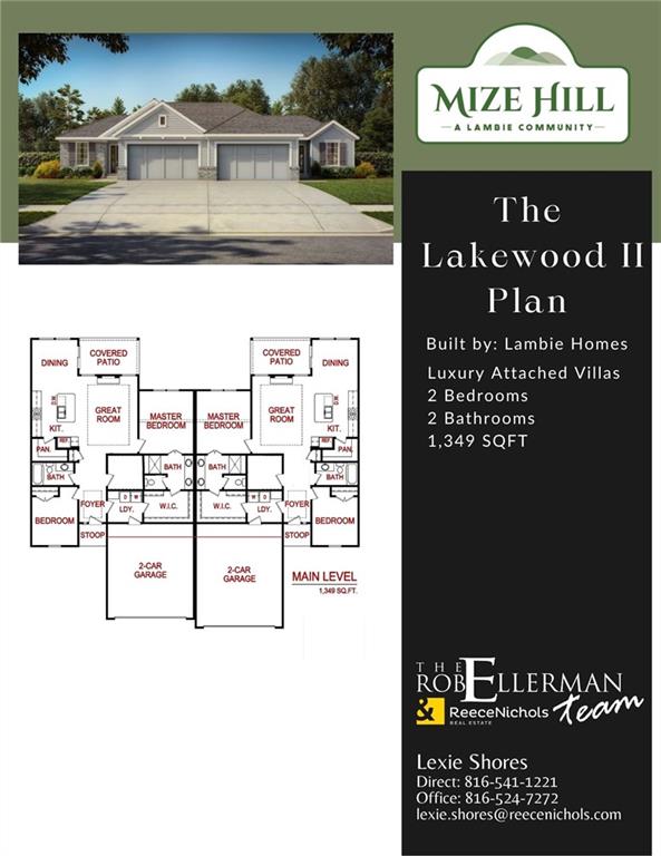 Currently a VACANT lot - Please tour model home at 25026 W. 94th Terrace for reference. The NEW Lakewood II by Lambie Homes offers 2-bedroom, 2-bathroom Villa + 8x8 flex room/pocket office. The grand 9' foot ceilings through the main level, this family room features a floor to ceiling stone with 40" Allusion electric fireplace and an inviting dining area that opens onto a covered patio. Enjoy the vibrancy of Mize Hill’s planned amenities, including walking trails, a pool, and nearby Cedar Station Park and Mize Lake. High end standard finishes include: Quartz countertops, 50 gallon water heater, black door lever hardware and hinges, and covered patio. This home is a new build and at base pricing. Estimated completion will be May 2026 *Model home open Wednesday-Sunday, 12:00pm–5:00pm. 25026 W. 94th Terrace* Reach out to community agent for more details!