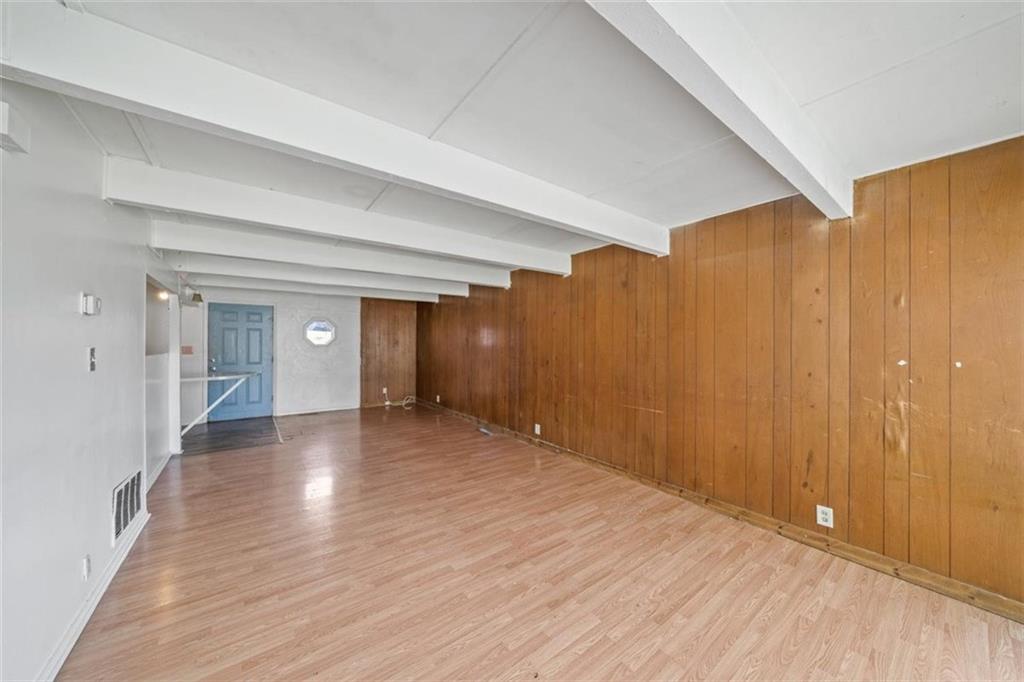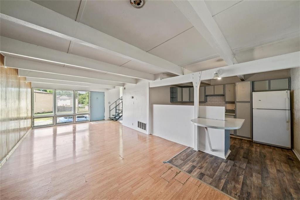 This end-unit townhouse blends mid-century design with an abundance of natural light and functional space. The front entry showcases dramatic floor-to-ceiling windows and exposed beams, creating an open and airy living room that flows seamlessly into the dining area and kitchen. The kitchen offers plenty of cabinet storage and counter space, with sightlines into the main living areas, and a half bath conveniently serves the main floor. Upstairs, you’ll find three bedrooms with fresh carpet and ample light from modern horizontal windows, along with a full bath. A striking metal staircase anchors the interior and adds architectural character. The lower level features a basement with additional space that can be used for storage, hobbies, or entertainment, including a retro-style bar area. The property also includes a private fenced backyard with direct access to covered parking. As an end unit, this townhouse offers extra privacy with green space on one side. Located near State Avenue, this home provides quick access to I-70 and I-635, along with nearby shopping, restaurants, and services.