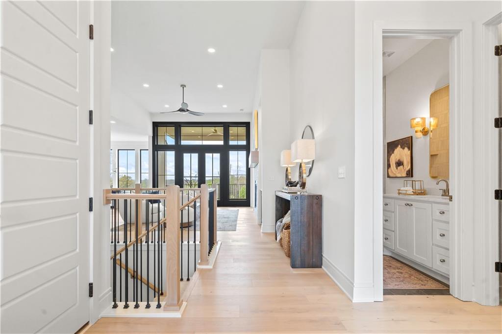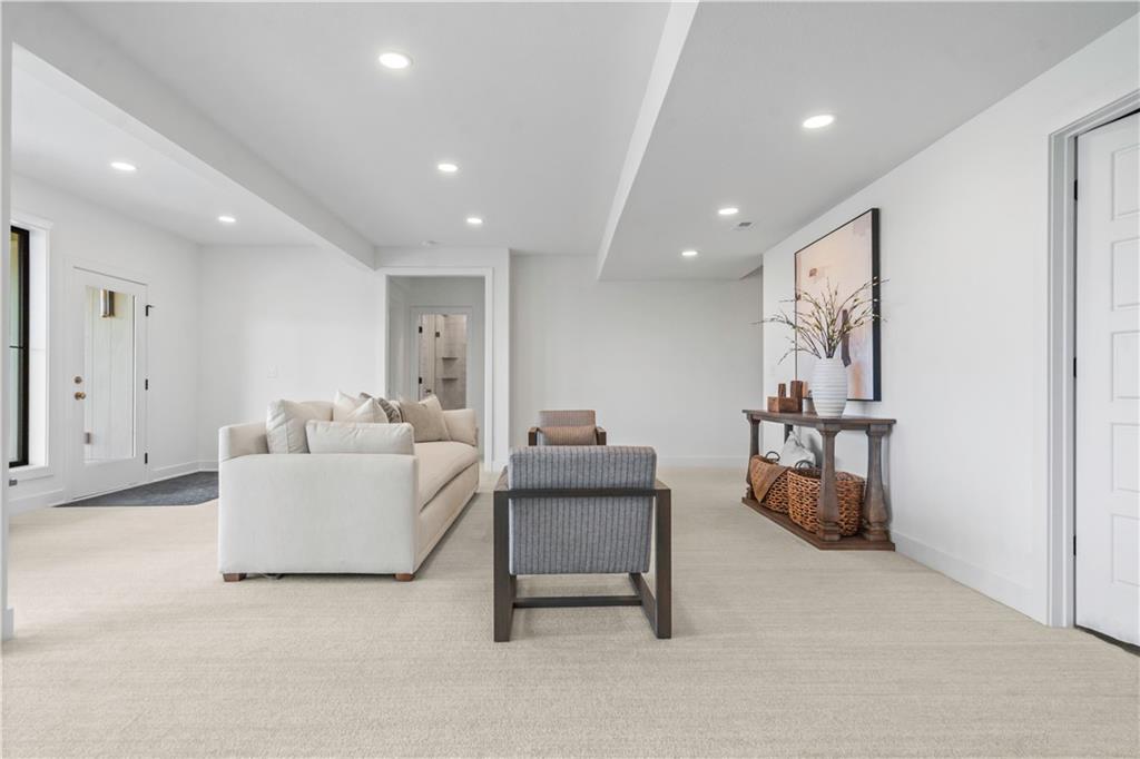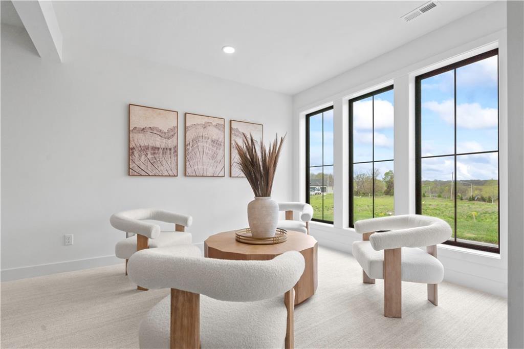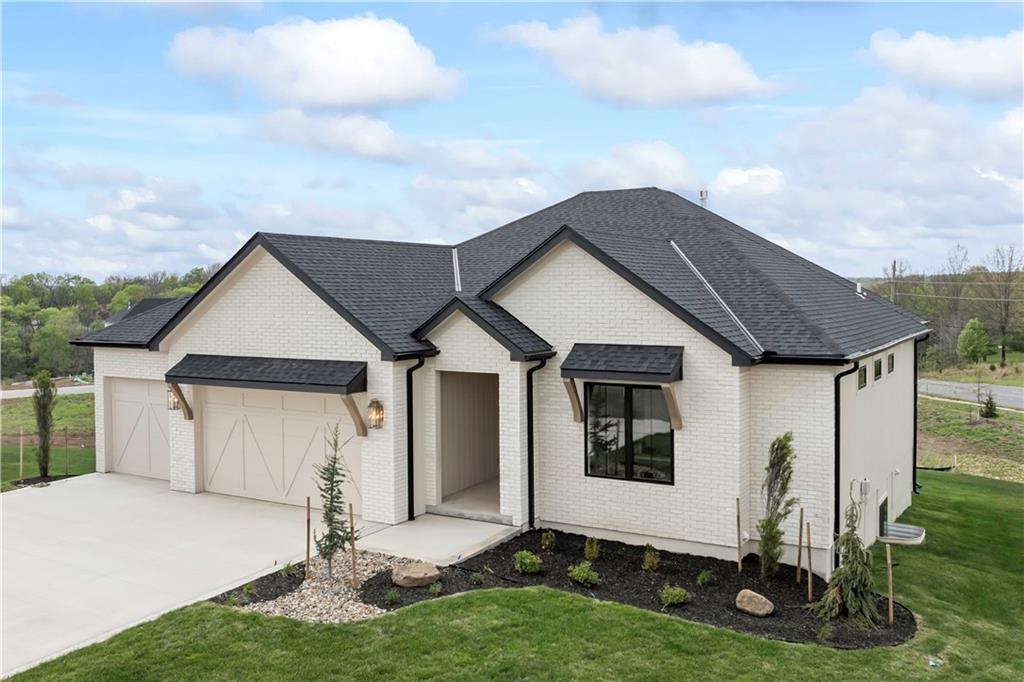 Stone Chase raises the bar with this breathtaking reverse 1.5 story, The Calvin II. Every detail has been thoughtfully designed with luxury and efficiency in mind. From the full stone front elevation to the grand double entry doors, this home exudes curb appeal. Step inside to find designer lighting, can lights throughout, and 8’ interior doors that set the tone for upscale living. The chef’s kitchen is a true showstopper with custom White Oak cabinetry, a Z-Line Autograph appliance package featuring double ovens, and the option for a panel-ready refrigerator. A walk-in butler’s pantry with sink offers added storage and prep space, while the open design makes entertaining a breeze. Retreat to the lower level, where a movie theater with Roxul soundproof insulation promises the ultimate entertainment experience. Outdoors, enjoy a low-maintenance stamped antiqued concrete patio and an upper balcony with large French doors, perfect for relaxing or entertaining. Natural light floods the home through 94" rear windows—the largest available from the manufacturer—while a suspended garage adds valuable storage space. Throughout the home, you’ll find casement windows, fully tiled bathrooms, and thoughtful details that elevate the overall design. Built with energy efficiency in mind, this home features 2x6 construction instead of the standard 2x4, moving the wall R-factor from R13 to R19, along with soaring 10’ walls that add volume and style. Nestled in Woodland Oaks, you’ll enjoy nearby access to Lake Jacomo as well as Legacy Park, which offers a state-of-the-art community center, amphitheater, walking trails, disc golf, and sports facilities for all ages. With an unbeatable location and a home packed full of luxury features, The Calvin II is truly a dream in the making.