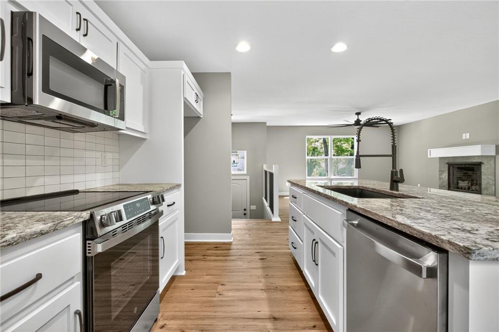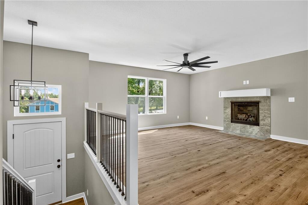 This brand-new split-entry home combines modern style with everyday comfort. The open-concept main living area features durable vinyl flooring, perfect for both daily living and entertaining, while plush carpet creates a cozy retreat in each of the bedrooms. The kitchen is designed with functionality and elegance in mind, showcasing granite countertops, quality GE appliances, and plenty of cabinet space. Relax in the living room around the inviting gas-burning fireplace, or retreat to the tile-finished bathrooms that offer a touch of luxury and easy maintenance. The master suite is a private haven, complete with a walk-in shower and a modern soaking tub for the perfect balance of relaxation and style. With its smart layout, timeless finishes, and attention to detail, this home is move-in ready and built for today’s lifestyle.