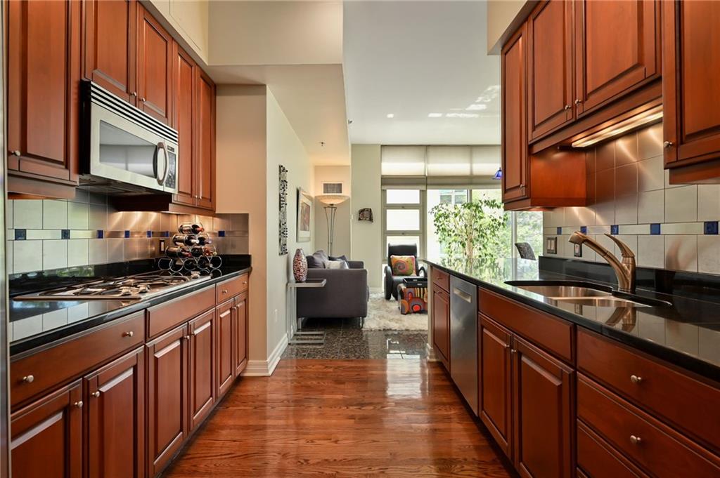 Modern Plaza-side condo with wraparound balcony and custom finishes. Welcome to Kirkwood Circle Condominiums, where elegance meets convenience just steps from the Country Club Plaza. This beautifully designed 2-bedroom residence showcases soaring ceilings, hardwood floors, floor-to-ceiling windows and California Closets throughout. The gourmet kitchen offers stainless steel appliances with artfully chosen tile & pendant lights, gas cooking, and double ovens with convection cooking option - ideal for everyday cooking as well as entertaining. The kitchen opens to the dining/sitting room with beautiful light and effortless access to the balcony. The spacious primary suite features large windows with fashioned shades/drapes, walk-in closet & bath with separate tub and walk-in shower. Cozy up by the crafted fireplace in the living room with track lighting and access to the wraparound balcony - perfect for morning coffee, unwinding at day's end, or simply enjoying treetop views that stretch from Sunset Hills to the Plaza. Kirkwood Circle delivers unmatched lifestyle amenities and services: 24/7 friendly front desk staff, security, resort-style pool, fitness center, party room with catering kitchen for entertaining guests, meeting rooms, bike storage, self-service car wash, dry cleaning services and exclusive resident events. All surrounded by 10 acres of lush gardens, fountains, and an open green space ideal for pets. Two secure garage spaces and large storage space are included along with easy guest parking that completes this rare opportunity to experience refined Plaza living.
