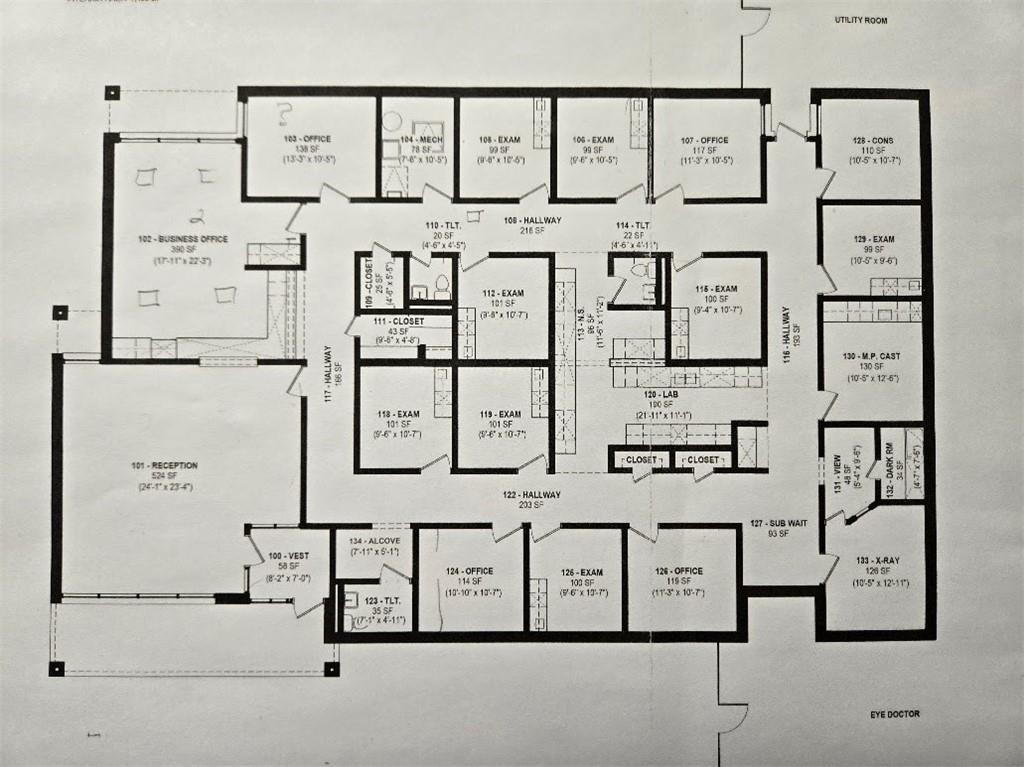 Spacious professional medical plaza is ready for a new owner. This property includes one building with two sections totaling 8,742 sqft. One section of the building is leased by an optometrist (long-term tenant). The vacant space (4,882 sqft) in the second section includes approximately 14 exam/patient rooms, kitchen, and a multi-use area. A hearing office (also long-term tenant) leases a small space of the section. Both tenants will remain in place with the sale of the property. Outstanding commercial investment opportunity.
