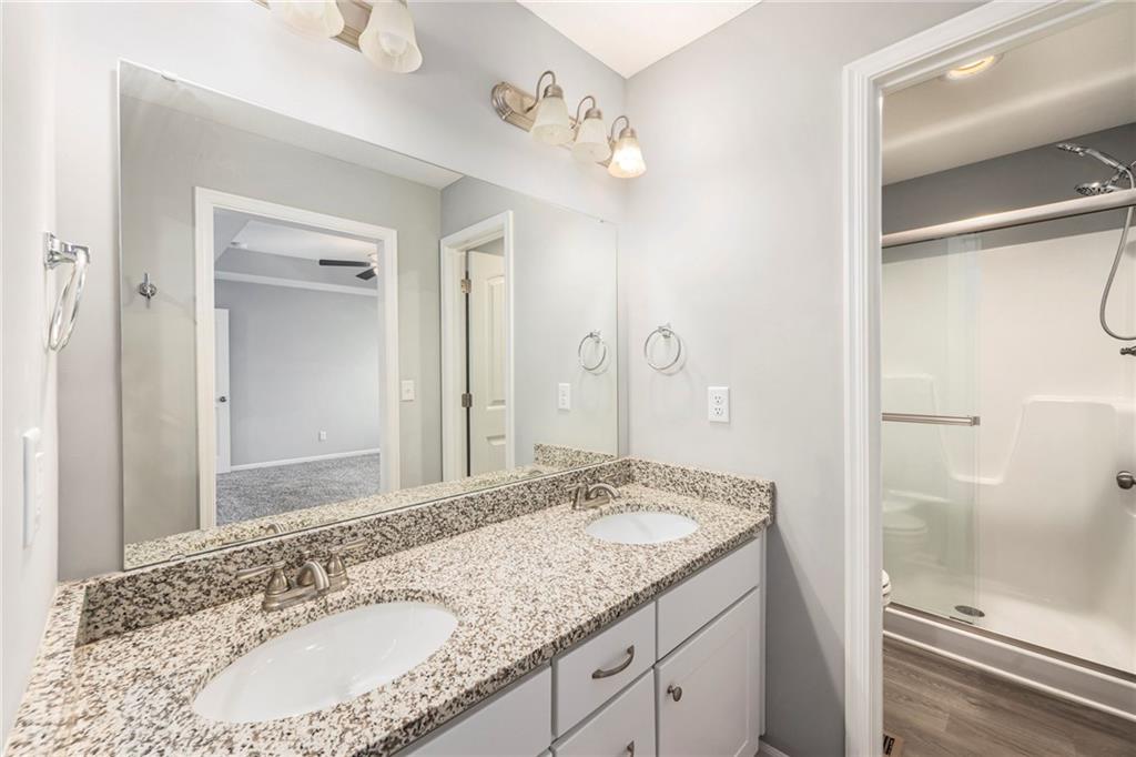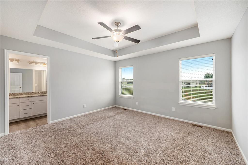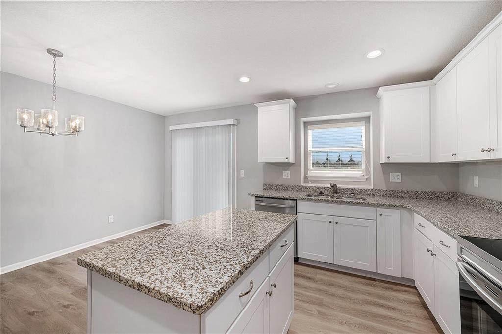 Welcome to this spacious 5-bedroom ranch that combines modern updates with plenty of room for everyone. The open main level features a bright living room with a cozy fireplace and large windows, flowing easily into the kitchen with granite counters, stainless steel appliances, and a functional island. The primary suite offers a tray ceiling, walk-in closet, and private bath with double vanities. Four additional bedrooms provide flexibility for family, guests, or a home office. The finished basement expands your living space, while the unfinished section is perfect for storage or hobbies. Step outside to enjoy evenings on the back deck overlooking the pond and green space. With a two-car garage and convenient location near schools, shopping, and dining, this home is a fantastic find for those wanting both space and comfort.