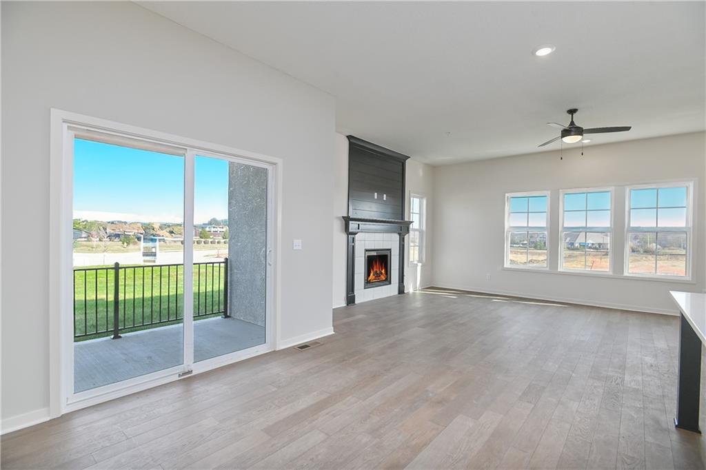 Welcome to the Maintenance Provided Ranch Villas. This residence is move in ready and showcases an open floor plan with 10-foot ceilings and refined finishes throughout. Maintenance-free living includes lawn care, snow removal, and all exterior upkeep, including roof replacement. The main level is thoughtfully designed with a spacious living room featuring a stunning fireplace and abundant natural light. The gourmet kitchen is appointed with stainless steel appliances, custom cabinetry, under-cabinet lighting, and a generous walk-in pantry. Additional conveniences on the main floor include a mudroom, built-in desk area and laundry room. Hardwood flooring enhances the entry, living room, kitchen, mudroom, office, and dining areas. The primary suite offers a walk-in closet, raised vanity tops, and a spa-inspired bathroom with beautifully tiled shower walls and floors. The lower level expands the living space with a large recreation room complete with a dry bar, two additional bedrooms, and a full bathroom—bringing the total to four bedrooms.