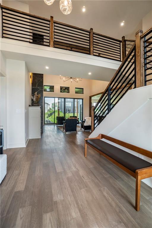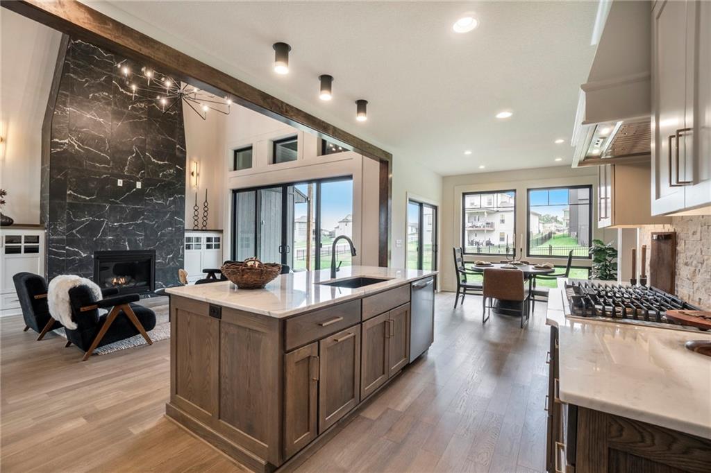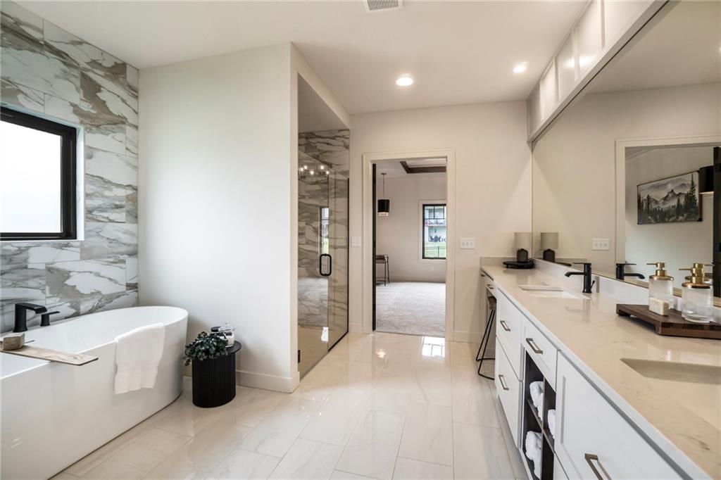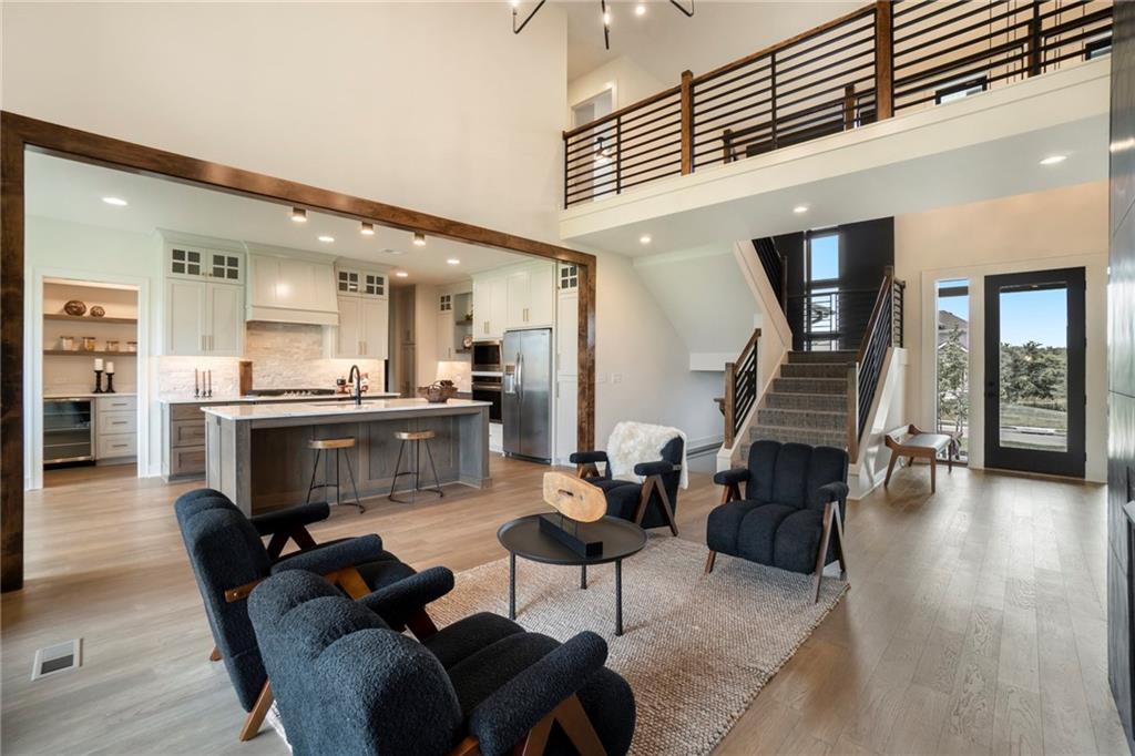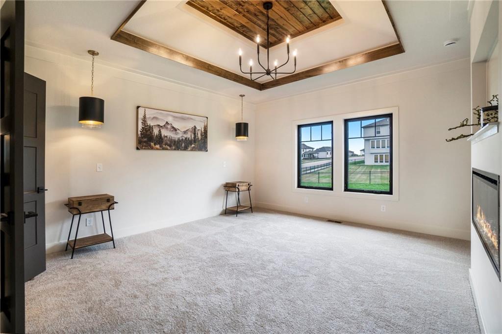 Ask about the Developer/Builder $10,000 INCENTIVE PROMO!!! This large corner lot is located at the back of the subdivision close to the pool and is so peaceful. In a culdesac. This one is a show stopper with an open concept great room that features soaring ceilings w/ gorgeous beams, oversized chandelier, 2-story gas fireplace in the living room, and tons of natural light. The chef's kitchen overlooks the great room which makes this home perfect for entertaining. The kitchen is complete with a large granite island, walk-in pantry with butlers bar, beverage fridge and sink, gas stove, and plenty of cabinet & counter space. Enjoy spring nights on the covered patio as the 8 ft. double doors open to a spacious colored, stamped concrete patio! Master suite has fireplace and double coffered ceilings on the main level with large, stunning master bath with a walk in shower, freestanding tub, double vanity, and walk-in closet with built in dresser with access to the main level laundry room. Upper level has a loft, 3 bedrooms and 2 bathrooms. It also has a closet for a stacking washer/dryer. Lower level is partially finished and has a large rec room, a half bath, and a separate room. It also can have another bedroom and full bath built with lots of storage space. Perks are soft close cabinets and drawers, kitchen fridge and beverage fridge included, garage door openers included. Lots up upgrades. Summit View Farms is located in award winning AAA Rated Schools. Community pool and playground are finished.