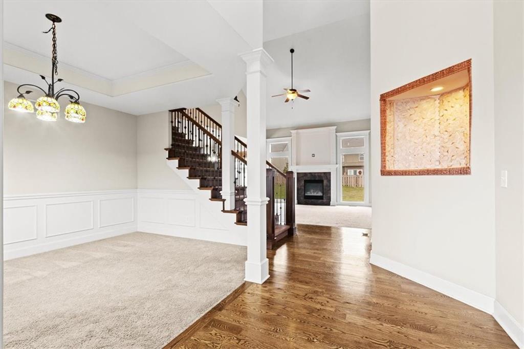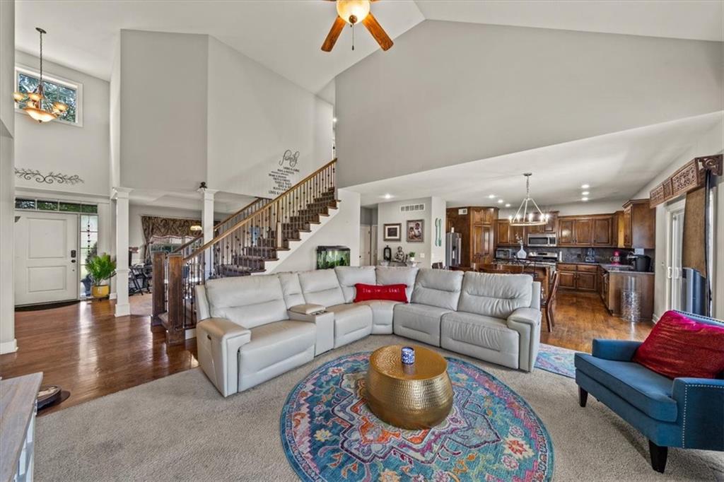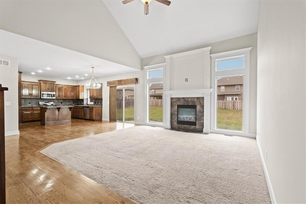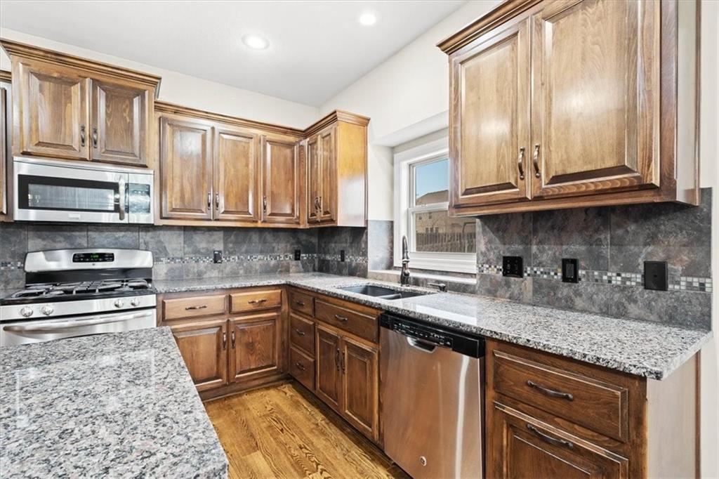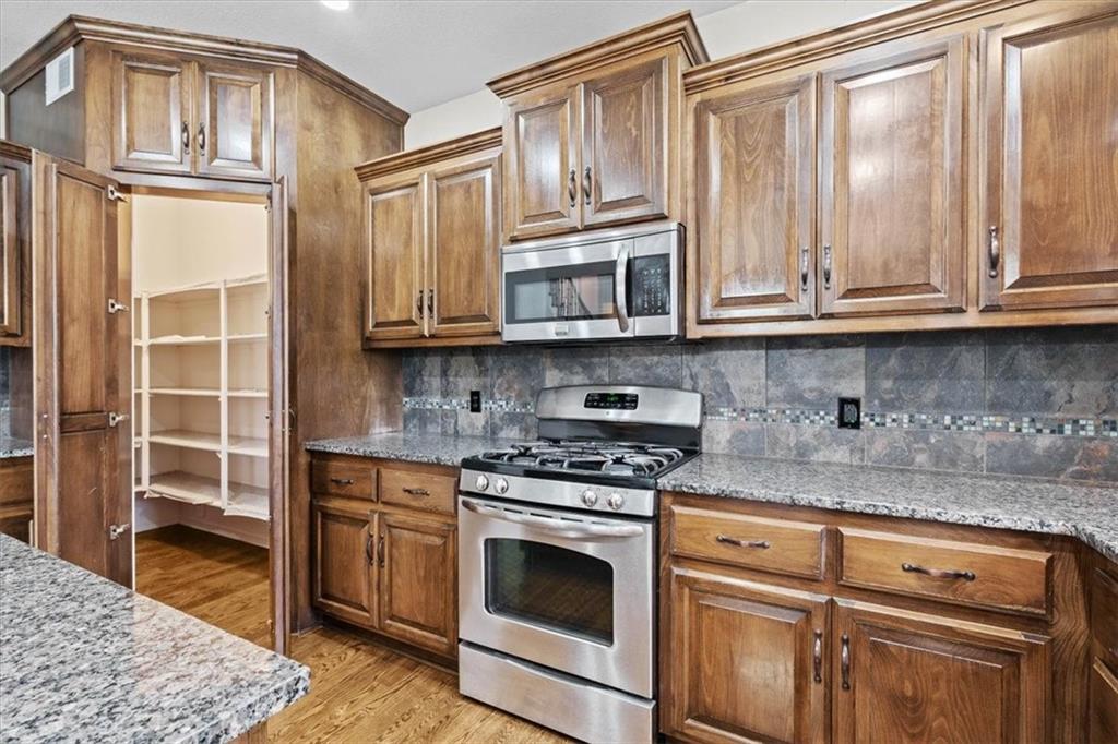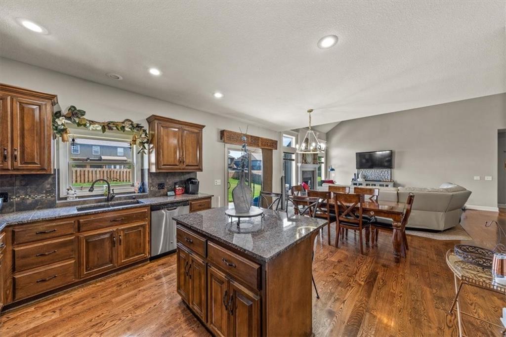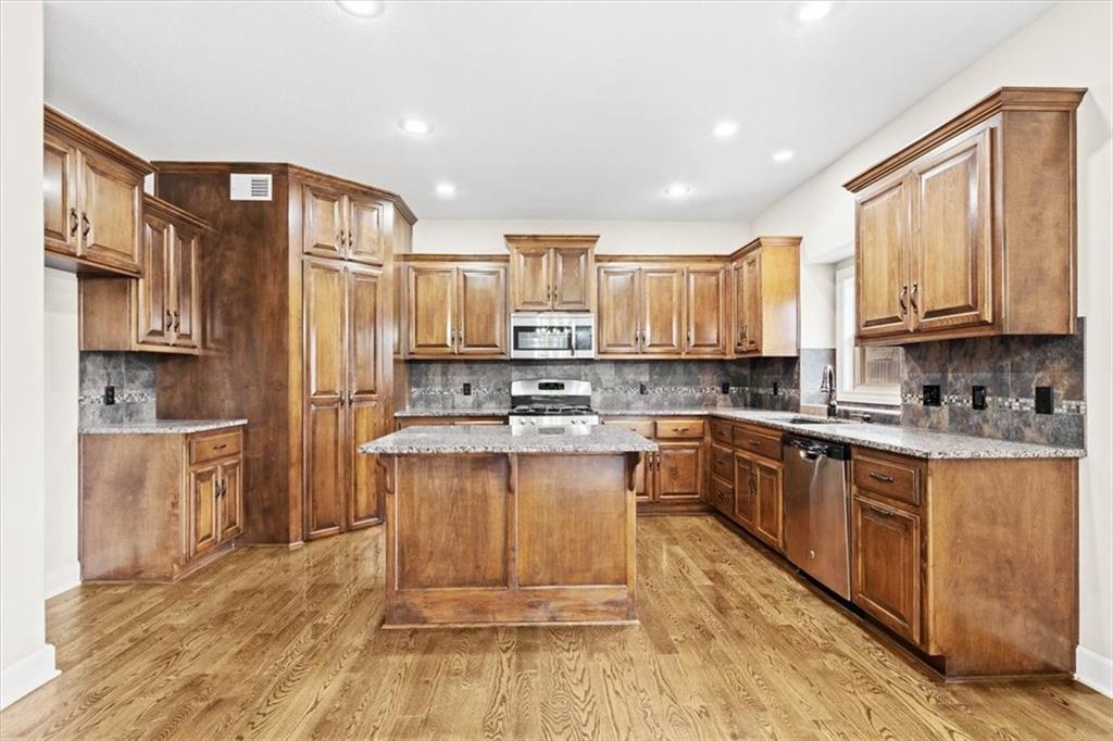 Back active again through no fault of sellers. Welcome to this beautiful 1.5-story home located in the highly sought-after Tiffany Woods neighborhood, within the prestigious Park Hill School District. Built in 2013, this residence offers a spacious and open floor plan ideal for both entertaining and everyday living. Featuring a main level luxurious master suite, a generous walk-in closet, double vanities, a Jacuzzi tub, and a shower for the ultimate retreat. A gourmet kitchen with granite countertops, stainless steel appliances, a walk-in pantry, and gleaming hardwood floors. The open-concept design flows seamlessly into the dining and living areas, creating a warm and welcoming space perfect for family gatherings. A formal living room provides additional space for entertaining or quiet gatherings. The convenience of a main level laundry room adds everyday functionality to this elegant layout. The second level boasts a large loft area, 3 generously sized bedrooms, and 2 full bathrooms, providing plenty of room for relaxation, play, or a home office. The fully finished lower level expands your living space with a large family room, a wet bar equipped with a dishwasher and a place to hold a refrigerator, a bedroom, and an additional full bathroom ideal for guests or multigenerational living. Outside, enjoy a private patio and a level backyard with an in-ground sprinkler system, perfect for relaxing or entertaining. Residents of this vibrant community also have access to walking trails and a neighborhood pool. Located just minutes from Zona Rosa’s shopping and dining options and only minutes from the new Kansas City International Airport, this home offers unmatched convenience and lifestyle. With a 3-car garage wired and ready for EV charging, this home is a rare find. Don’t miss your chance to make it yours! Schedule a showing today.