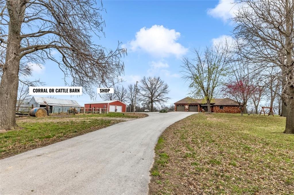 This recreational property features a pond, two miles of trails, woods, streams, and more wildlife than you can imagine. It also generates income if you grow crops or raise livestock. Most of all, it’s a home. Look out the windows, and you’ll fall in love with the views. Nearly gutted to the studs, the Sellers have spent the last eight years updating and decorating so you can enjoy horses and livestock, hunting deer or wild turkey, or exploring the mile of trails carved through the trees. The plumbing fixtures, including shower heads, faucets, sinks, and toilets, are newer. The kitchen and baths feature newer cabinets, sinks, and granite or marble countertops. Stainless Steel Appliances are under two years old. ALL light fixtures and most switches and plugs are newer. The oversized mudroom is large enough for a loveseat, chair, and an old-fashioned tub sink. The great room boasts vaulted ceilings and a stunning floor-to-ceiling brick fireplace. The primary bath has beautiful tile floors, a newer shower, and a whirlpool tub. The spacious basement rec room is perfect for pool, game nights, and drinks at the wet bar. The basement also features a non-conforming bedroom and full bath. The massive patio easily accommodates 75+ guests and is stubbed for an outdoor kitchen. The livestock barn has an automatic watering area. A breathtaking quarter-mile trail, LOVERS LANE, feels like a movie set. The property is fenced and cross-fenced for livestock and horses. The septic, furnace, A/C, and water heater are 1–3 years old. The 1.87-acre pond is 27' deep and stocked with bass, crappie, bluegill, and catfish.