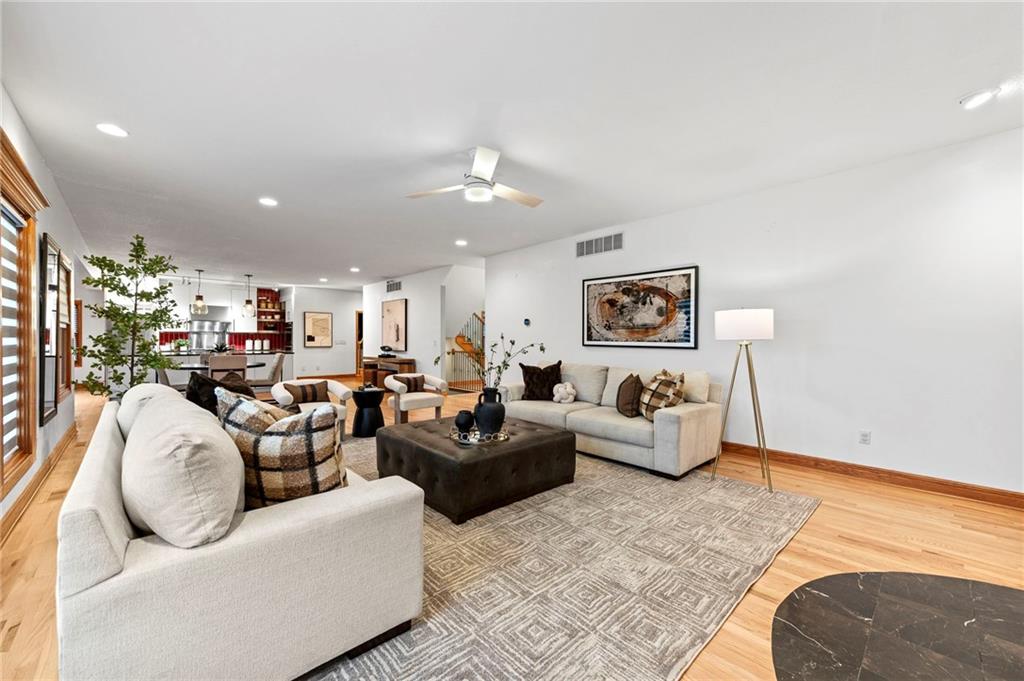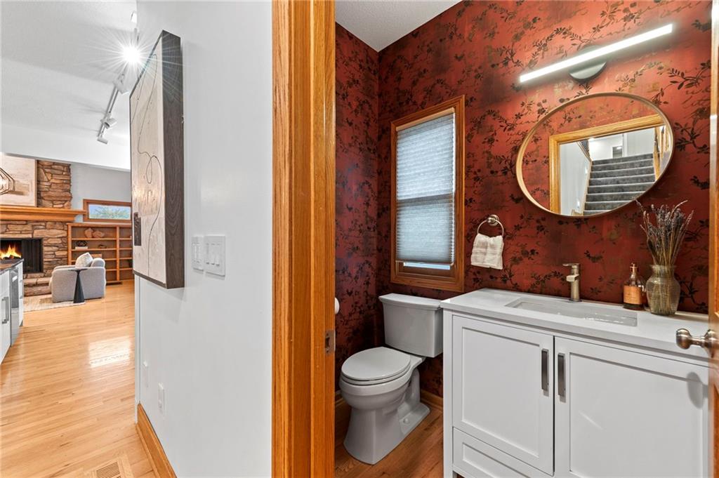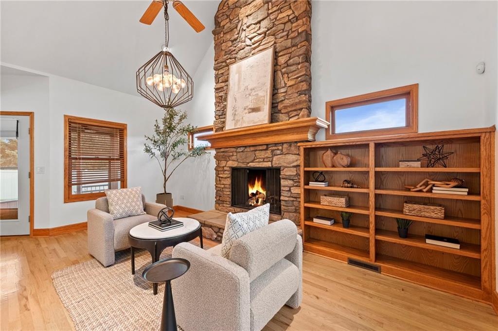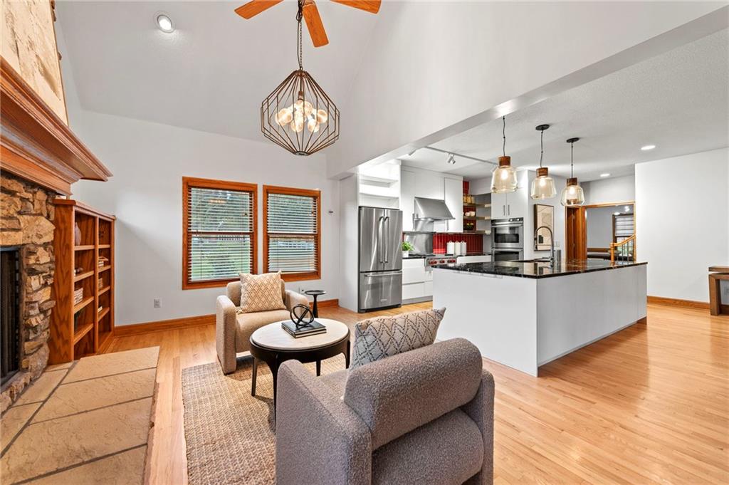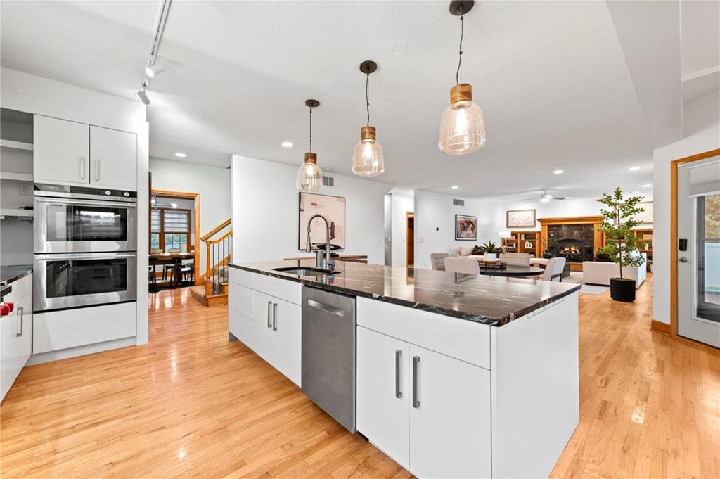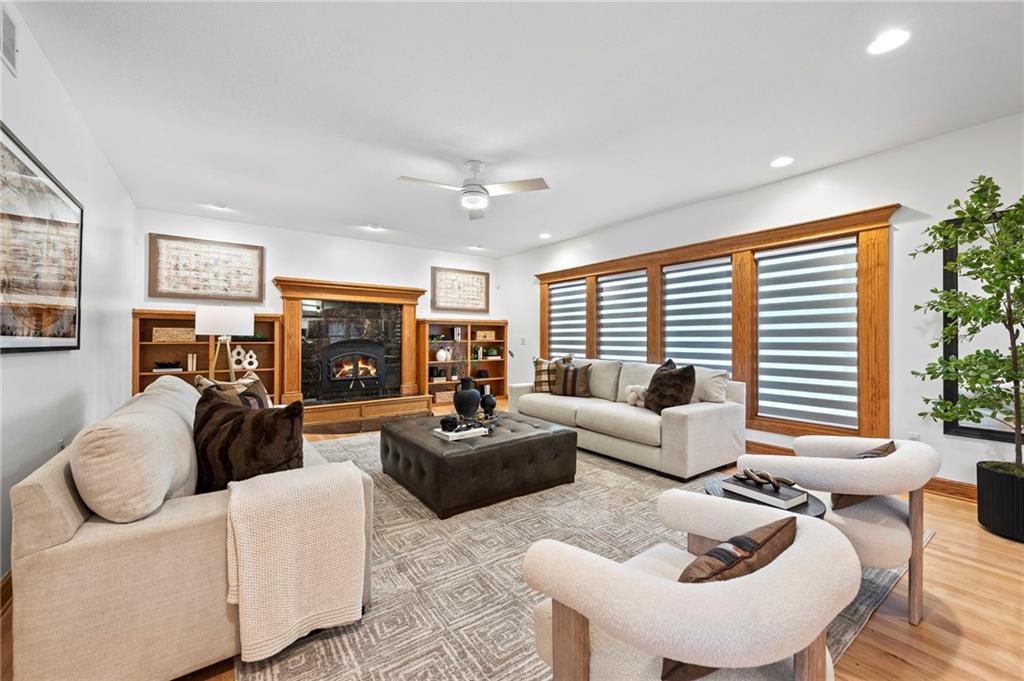 Discover the perfect sanctuary in this stunning 2-story, 4-bedroom, 3.5-bath home, nestled at the end of a cul-de-sac in the highly sought-after Lee’s Summit area. With generous living spaces and modern amenities, this home combines luxury and comfort to create an inviting atmosphere! As you step through the front door, you are greeted by beautiful hardwood floors that flow seamlessly throughout the main level, enhancing the home’s open and airy feel. The first level features a thoughtfully designed bedroom with a private en-suite. An additional half bath and main-level laundry further enhance the functionality of this exquisite home. Gather around one of the two elegant fireplaces that charm the living areas, perfect for cozy family nights or entertaining friends. The heart of this home is undoubtedly the chef’s kitchen, which has been fully updated to include custom push-to-open drawers and cabinets, sleek stainless steel appliances, rich granite countertops, and modern light fixtures. Adjacent to the kitchen, the formal dining room sets the stage for memorable gatherings and festivities. Venture upstairs to discover the expansive master bedroom, complete with an additional versatile room that can serve as a private office, nursery, or reading nook. The luxurious en-suite bathroom features double vanities, a spacious shower, a spa bathtub, and a generous walk-in closet—creating a serene personal oasis. The second level also boasts two additional bedrooms connected by a charming Jack and Jill bathroom, plus an additional room, ideal for a playroom or hobby space. Step outside to a beautiful screened-in porch that offers tranquil views of the backyard, complete with a 6-foot vinyl privacy fence for your peace and seclusion. The finished basement includes a theater room for fun tv nights or for your football watching parties! This remarkable home combines elegant design, spacious living, and modern conveniences to create an unparalleled lifestyle!