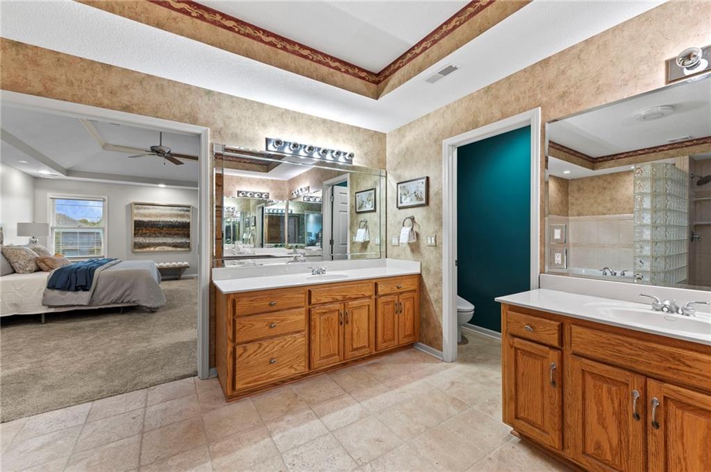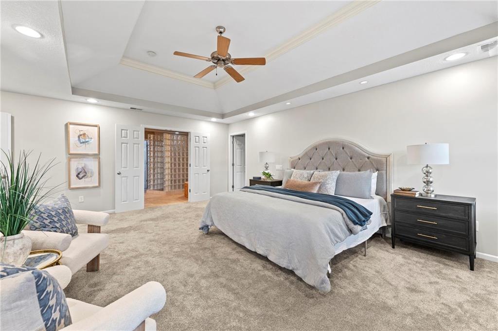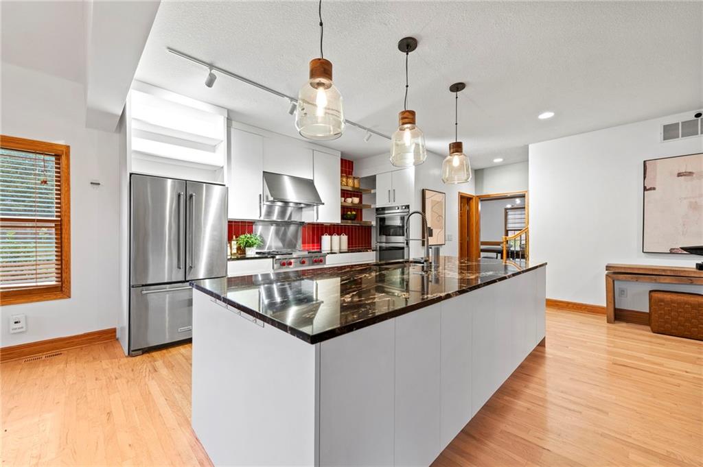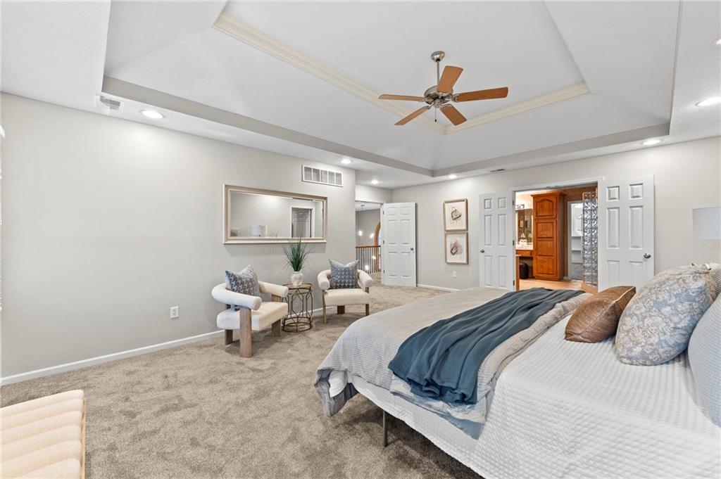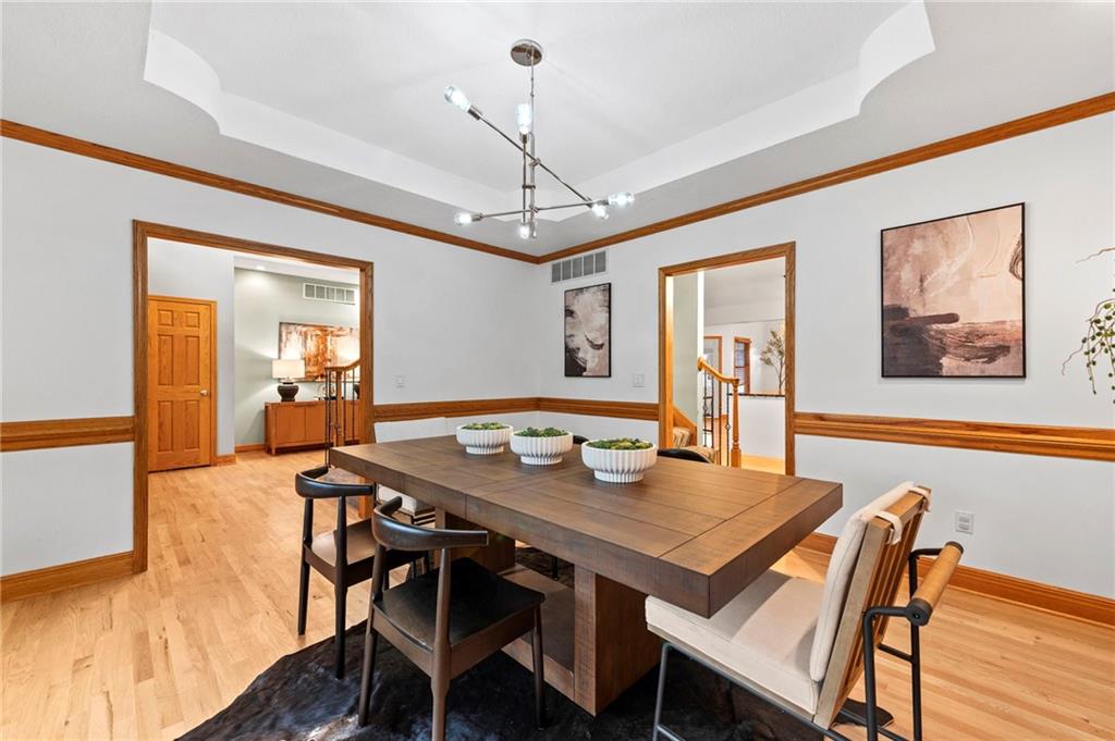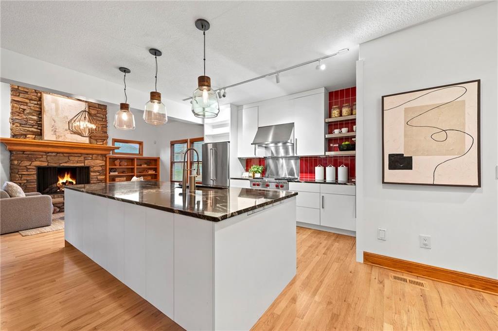 Discover the perfect sanctuary in this stunning 2-story, 4-bedroom, 3.5-bath home, nestled at the end of a cul-de-sac in the highly sought-after Lee’s Summit area. With generous living spaces and modern amenities, this home combines luxury and comfort to create an inviting atmosphere! As you step through the front door, you are greeted by beautiful hardwood floors that flow seamlessly throughout the main level, enhancing the home’s open and airy feel. The first level features a thoughtfully designed bedroom with a private en-suite. An additional half bath and main-level laundry further enhance the functionality of this exquisite home. Gather around one of the two elegant fireplaces that charm the living areas, perfect for cozy family nights or entertaining friends. The heart of this home is undoubtedly the chef’s kitchen, which has been fully updated to include custom push-to-open drawers and cabinets, sleek stainless steel appliances, rich granite countertops, and modern light fixtures. Adjacent to the kitchen, the formal dining room sets the stage for memorable gatherings and festivities. Venture upstairs to discover the expansive master bedroom, complete with an additional versatile room that can serve as a private office, nursery, or reading nook. The luxurious en-suite bathroom features double vanities, a spacious shower, a spa bathtub, and a generous walk-in closet—creating a serene personal oasis. The second level also boasts two additional bedrooms connected by a charming Jack and Jill bathroom, plus an additional room, ideal for a playroom or hobby space. Step outside to a beautiful screened-in porch that offers tranquil views of the backyard, complete with a 6-foot vinyl privacy fence for your peace and seclusion. The finished basement includes a theater room for fun tv nights or for your football watching parties! This remarkable home combines elegant design, spacious living, and modern conveniences to create an unparalleled lifestyle!