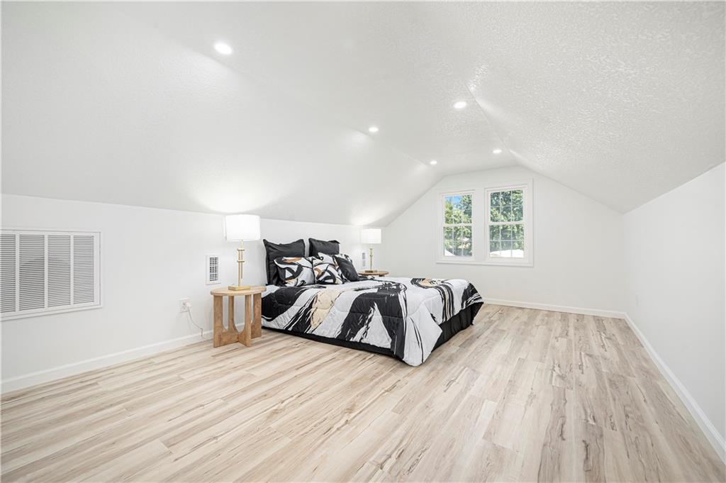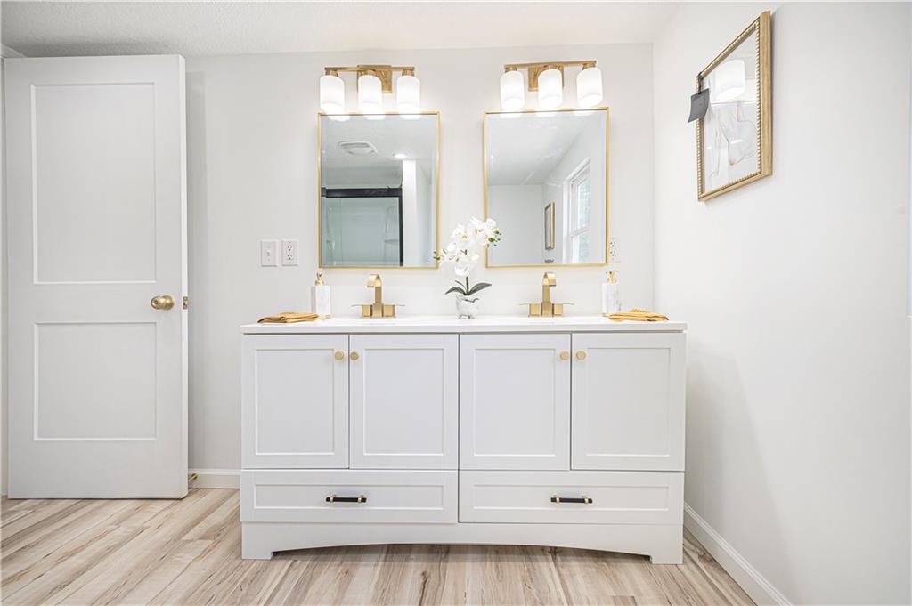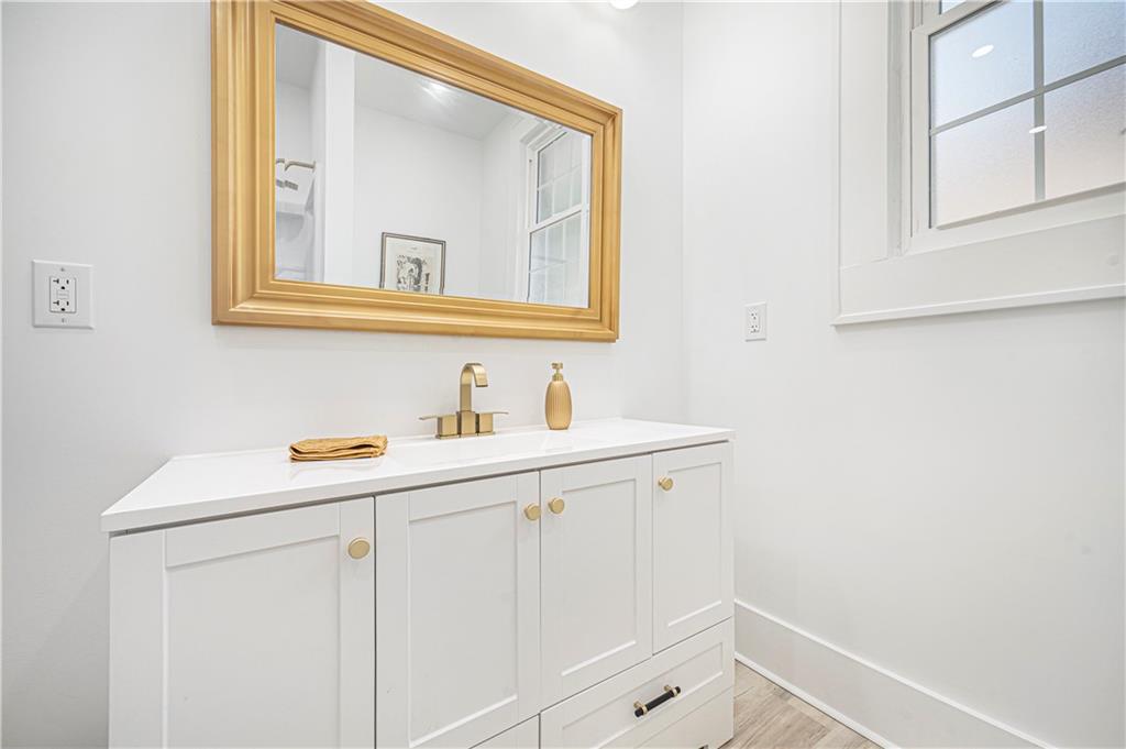 Price improvement! Charming 1931 Bungalow, Fully Rebuilt for Today’s Lifestyle! Step into timeless charm with modern convenience in this beautifully rebuilt 3-bedroom, 2-bathroom bungalow. Originally built in 1931, this home has been thoughtfully renovated from top to bottom with today’s buyer in mind. The exterior shines with a new roof, siding, windows, and front porch, highlighted by four stately metal-wrapped columns and the refinished original front door. Inside, you’ll find fresh paint, luxury vinyl plank flooring (scratch- and water-resistant), and restored original trim and built-in woodwork that showcase the home’s character. The open-concept main level flows seamlessly from the living room to the dining area and into the kitchen. Two spacious bedrooms with ceiling fans and high ceilings are on the main floor, along with a full bathroom featuring a vanity with gold accents and a shower/tub combo. The kitchen is a true showpiece with butcher block countertops, new black appliances, crisp white cabinetry, brushed gold hardware, and a bartop with seating for four. An exposed brick accent wall adds a touch of original character. Step out the back door to a cozy porch, privacy-fenced yard, new gravel, and parking for up to four vehicles. Upstairs, discover a spacious primary suite with a walk-in closet and en-suite bathroom complete with double vanities and a shower/tub combo. The refinished basement offers additional living space, perfect for a media room, playroom, or home office, along with laundry hookups. Additional updates include a new HVAC system, hot water heater, and all-new plumbing, giving you peace of mind for years to come. If you’ve been searching for a home that blends historic charm with modern upgrades, this is the one you won’t want to miss!