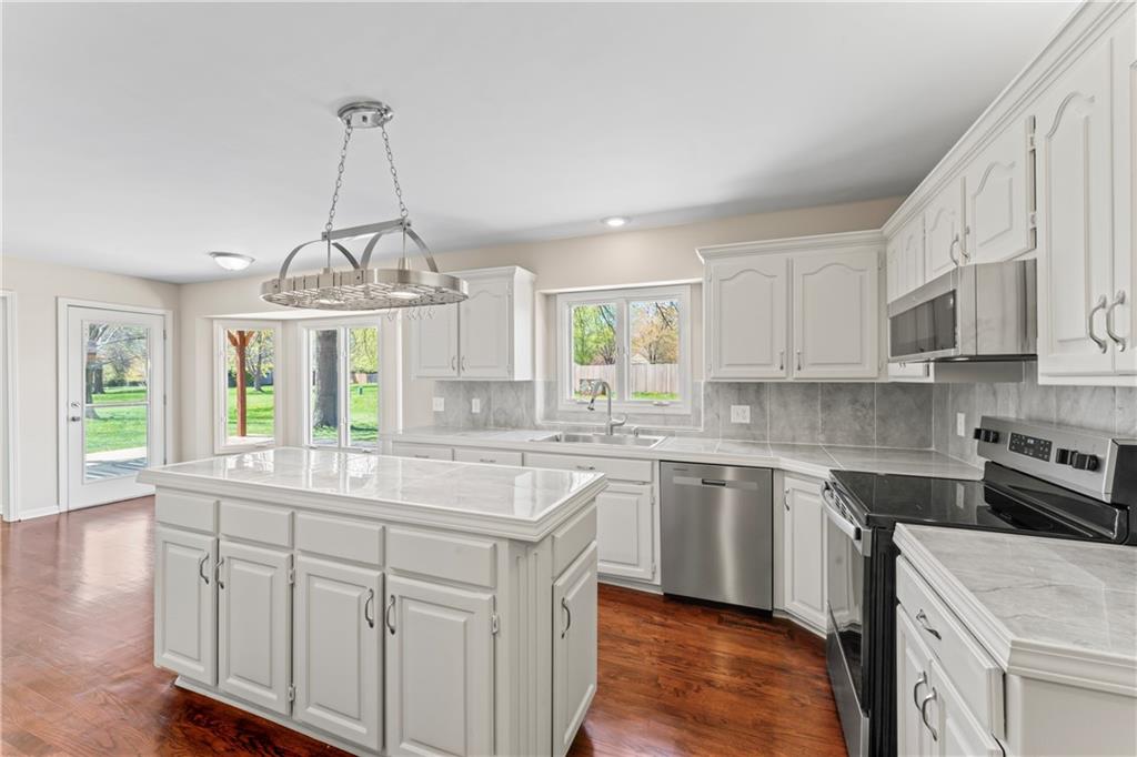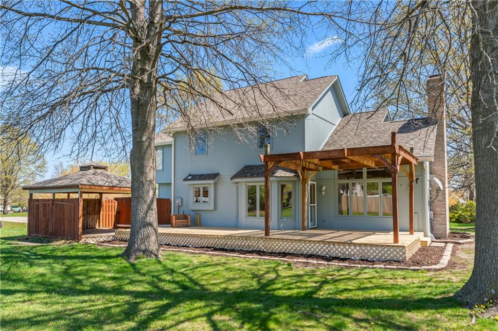 Modern two-story home located on an oversized corner lot in Grain Valley. The property includes four bedrooms, three and a half bathrooms, and a finished basement. Recent updates feature a new HVAC system, a newer roof, new appliances, freshly painted and new flooring throughout. Additional features include a vaulted ceiling, large deck and gazebo, fireplace, and a laundry room located off the kitchen.