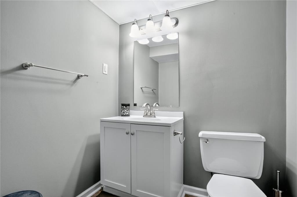 WELCOME HOME! The second you enter your new home, you'll love the vaulted ceilings, the open floor plan and the beautifully updated kitchen. Walk out of the kitchen onto the new composite deck that spans the length of the home. Enjoy the large, fully fenced backyard for all the cookouts and activities! Master bedroom and secondary rooms are all great sizes, with double closets. Downstairs is a large Recreation room (or 4th non-conforming bedroom) and a newly remodeled 3rd full bathroom (shower only). Extra deep garage with lots of space for a workshop or additional storage. Located in a quiet, friendly neighborhood but still close to all the major roads and all the amenities. Community has so many perks too - swimming pool, playground and your own LAKE!