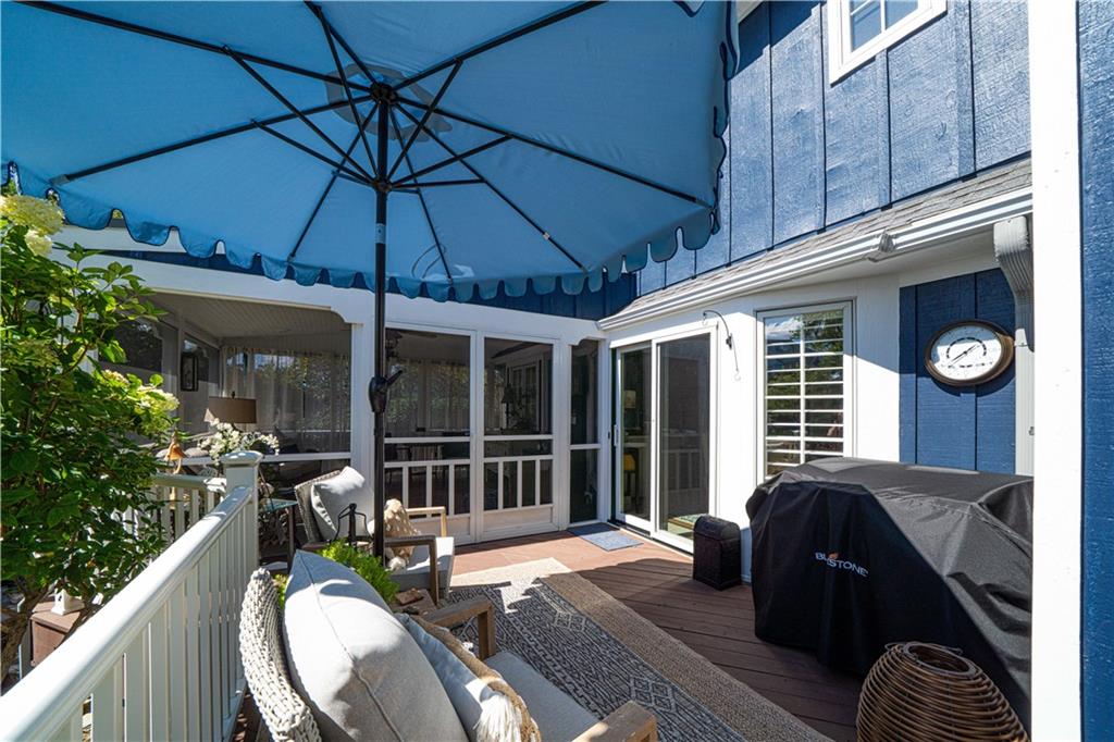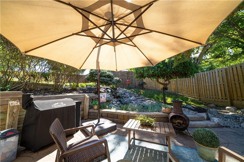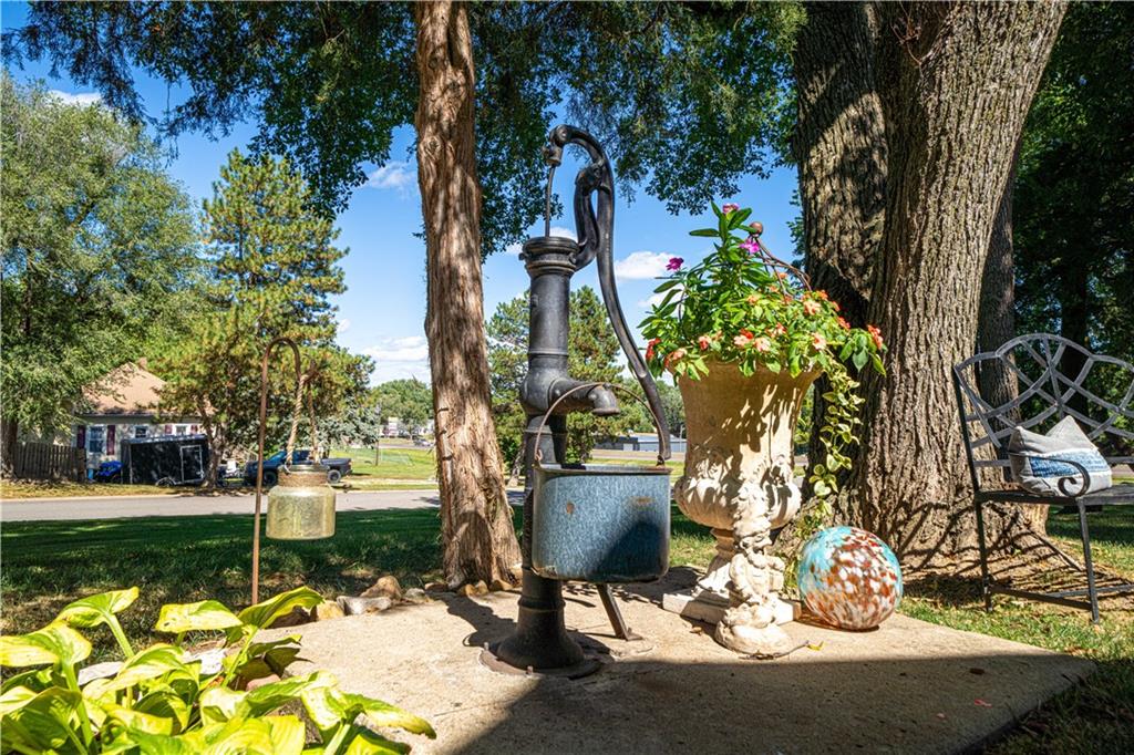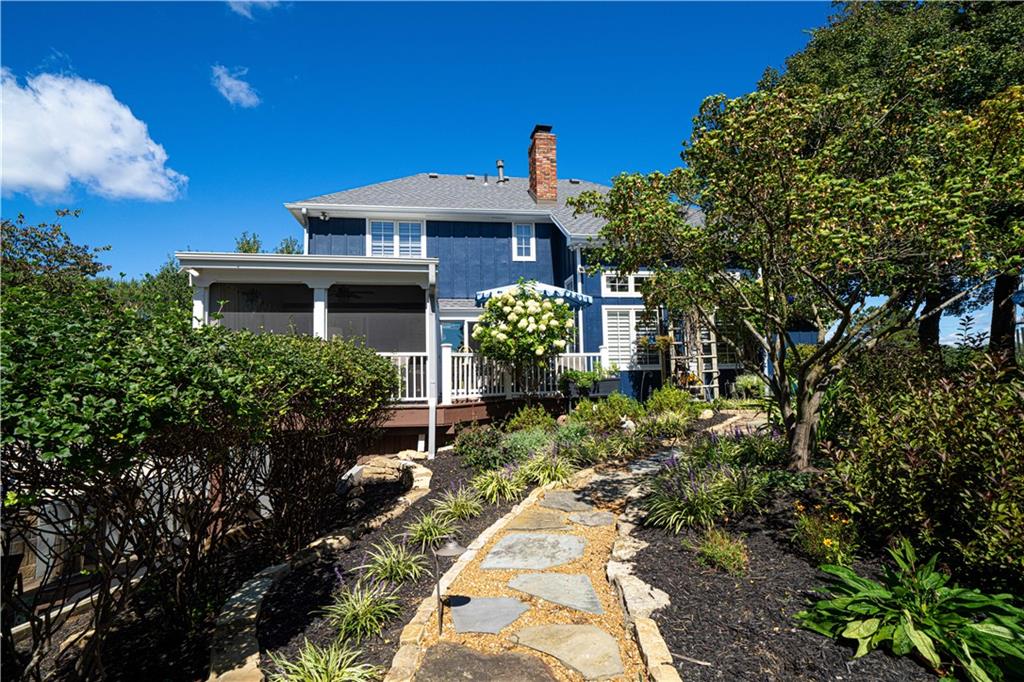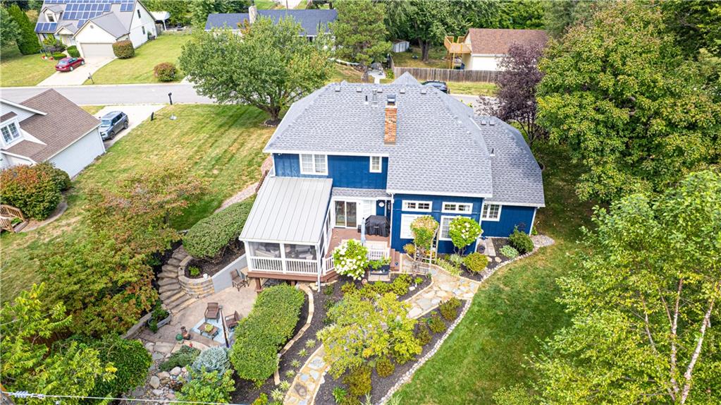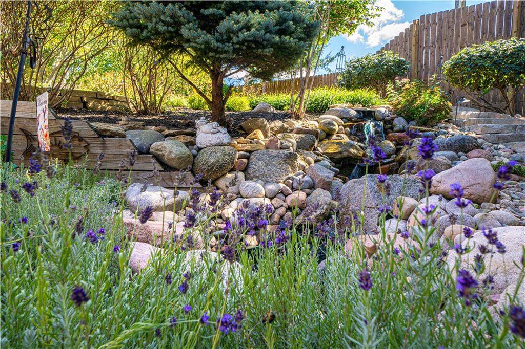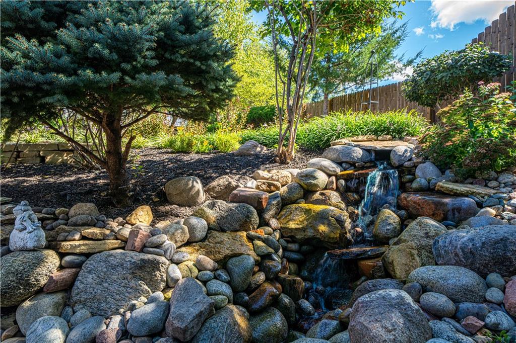 Welcome to this beautiful 5-bedroom, 3.5-bath home (4 conforming plus a non-conforming in the basement), perfectly situated on a spacious corner lot that includes 2 lots, totaling .88 acres. From the moment you arrive, you’ll appreciate the thoughtful details, including quartz counter tops in the kitchen, elegant plantation shutters throughout and a see-through fireplace that adds warmth and charm to both living spaces. The main floor features a private master suite, complete with a luxurious bathroom highlighted by a color therapy jet tub—your own spa-like retreat designed for relaxation and wellness. Outdoors, the property feels like your own private haven. Meander through the vibrant perennial gardens that bloom year after year and follow the path to the tranquil waterfall—an inviting spot to gather with family and friends. The pavilion, set on its own 1/2-acre lot, is complete with a bar, treed backdrop, and ample seating, making it the perfect setting for entertaining, from lively summer cookouts to cozy fall evenings. Inside, the home offers comfort, style, and function. The kitchen opens to a 3-season room, where you can enjoy your morning coffee this fall while overlooking the backyard. A brand-new wine and coffee bar adds a modern touch, while the in-house Sonos system ensures rich, whole-home sound during gatherings. The walk-out basement is designed for relaxation and fun, featuring a built-in bar, generous entertaining space, and a non-conforming 5th bedroom—perfect for guests, a home office, gym, or hobby room. With direct access to the backyard, this level is an effortless extension of the home’s living areas. Upstairs, you’ll find large bedrooms, each with walk-in closets that provide both comfort and convenience. Thoughtfully designed and beautifully maintained, this home blends everyday functionality with special spaces for entertaining and enjoying life’s moments. Builder-Don Clark.