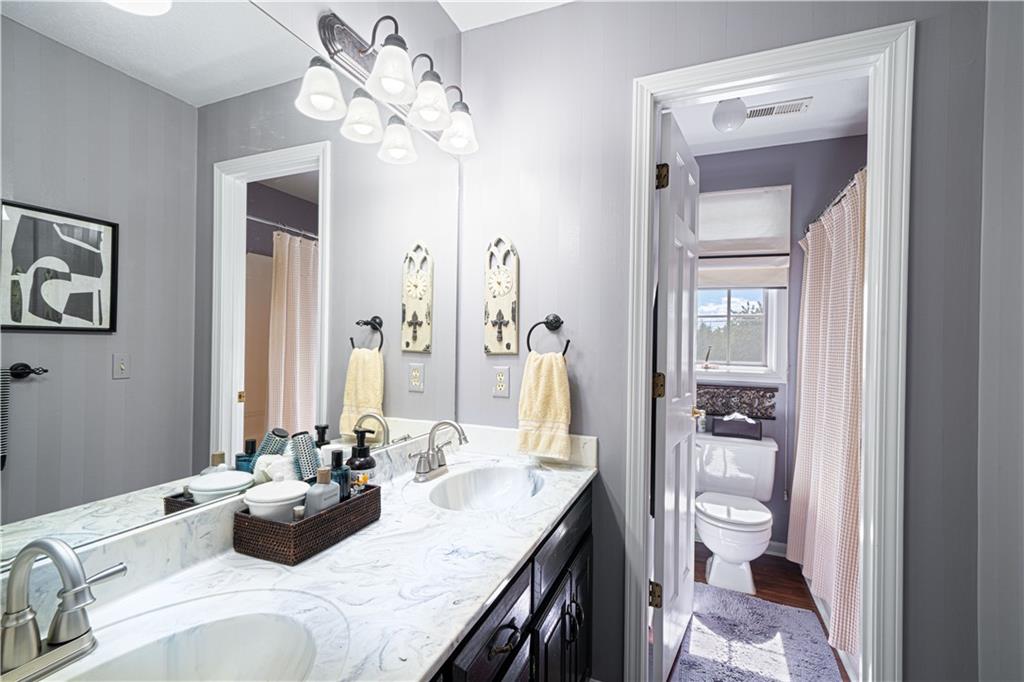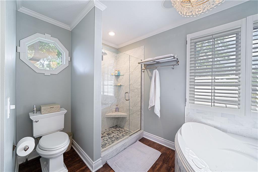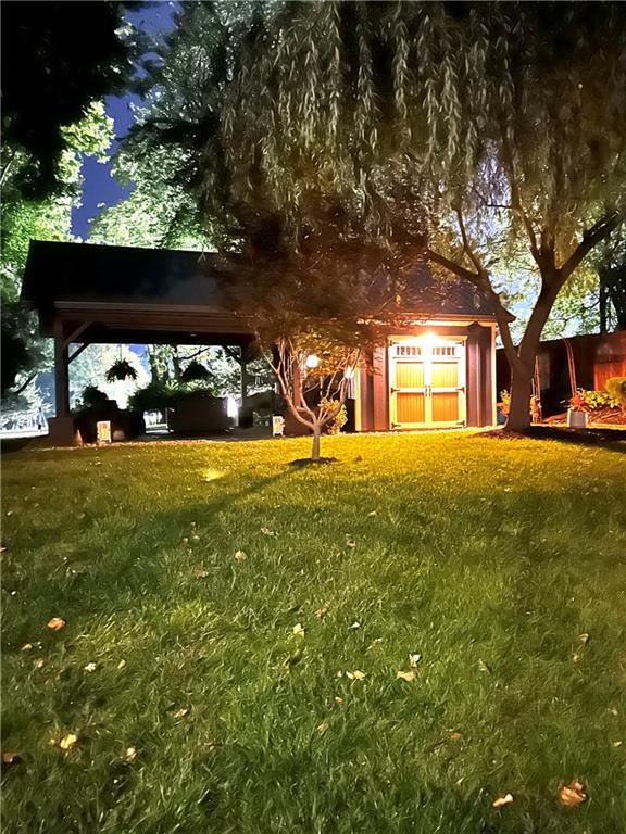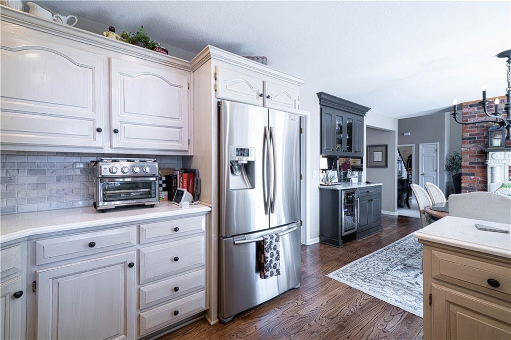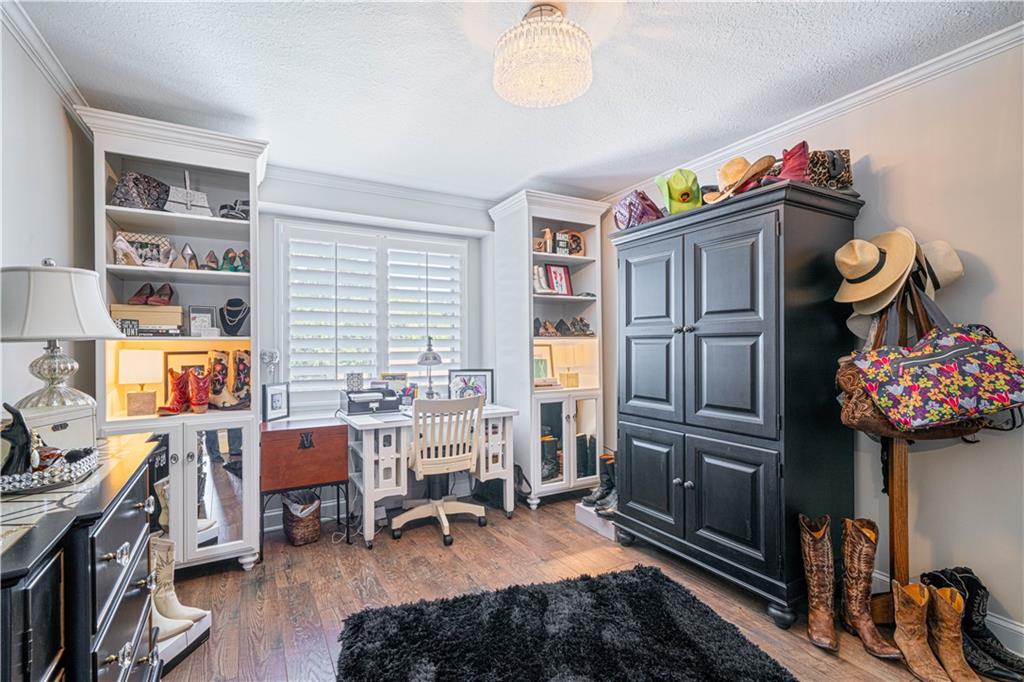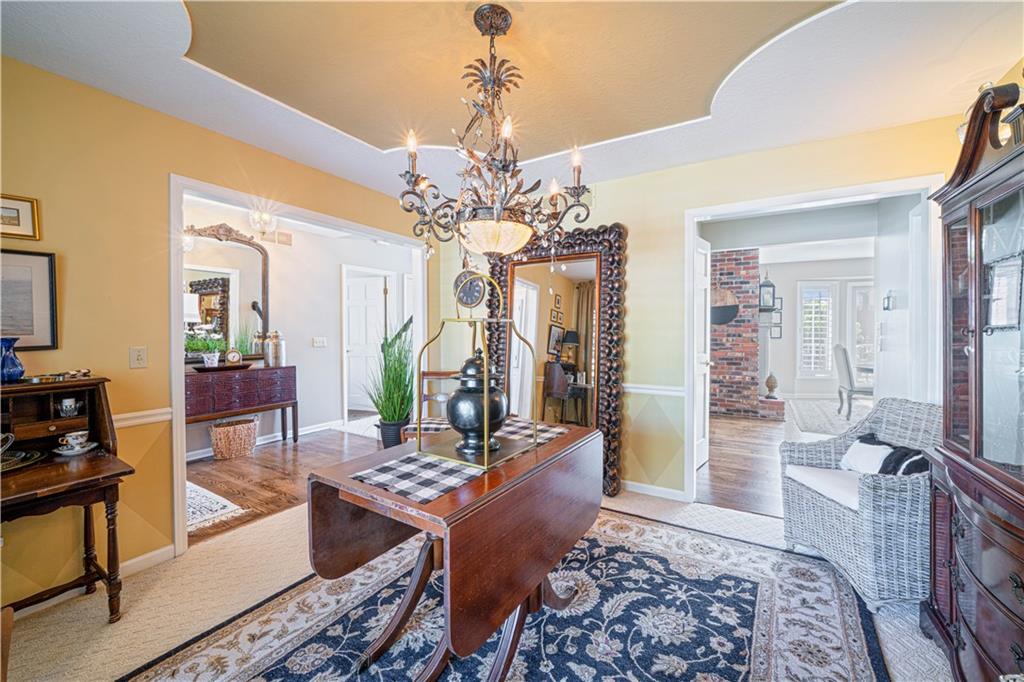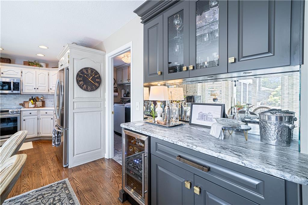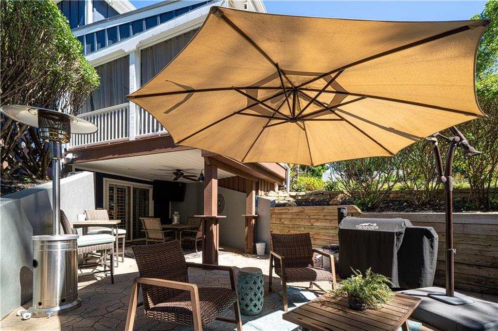Welcome to this beautiful 5-bedroom, 3.5-bath home (4 conforming plus a non-conforming in the basement), perfectly situated on a spacious corner lot that includes 2 lots, totaling .88 acres. From the moment you arrive, you’ll appreciate the thoughtful details, including quartz counter tops in the kitchen, elegant plantation shutters throughout and a see-through fireplace that adds warmth and charm to both living spaces. The main floor features a private master suite, complete with a luxurious bathroom highlighted by a color therapy jet tub—your own spa-like retreat designed for relaxation and wellness. Outdoors, the property feels like your own private haven. Meander through the vibrant perennial gardens that bloom year after year and follow the path to the tranquil waterfall—an inviting spot to gather with family and friends. The pavilion, set on its own 1/2-acre lot, is complete with a bar, treed backdrop, and ample seating, making it the perfect setting for entertaining, from lively summer cookouts to cozy fall evenings. Inside, the home offers comfort, style, and function. The kitchen opens to a 3-season room, where you can enjoy your morning coffee this fall while overlooking the backyard. A brand-new wine and coffee bar adds a modern touch, while the in-house Sonos system ensures rich, whole-home sound during gatherings. The walk-out basement is designed for relaxation and fun, featuring a built-in bar, generous entertaining space, and a non-conforming 5th bedroom—perfect for guests, a home office, gym, or hobby room. With direct access to the backyard, this level is an effortless extension of the home’s living areas. Upstairs, you’ll find large bedrooms, each with walk-in closets that provide both comfort and convenience. Thoughtfully designed and beautifully maintained, this home blends everyday functionality with special spaces for entertaining and enjoying life’s moments. Builder-Don Clark.