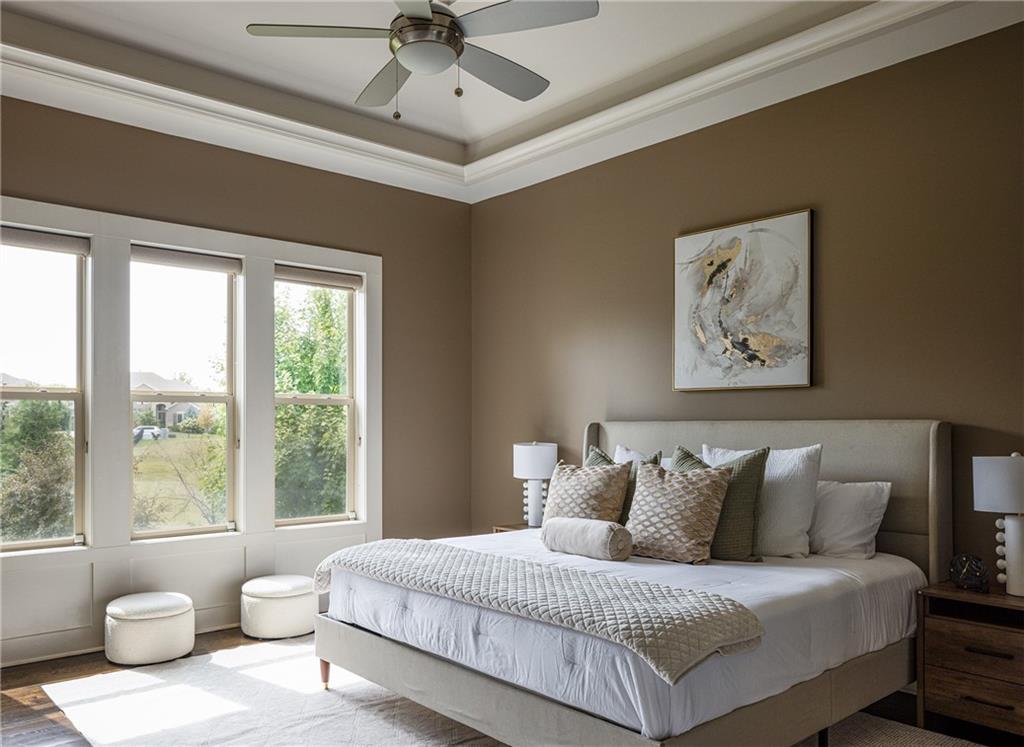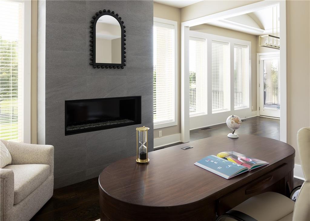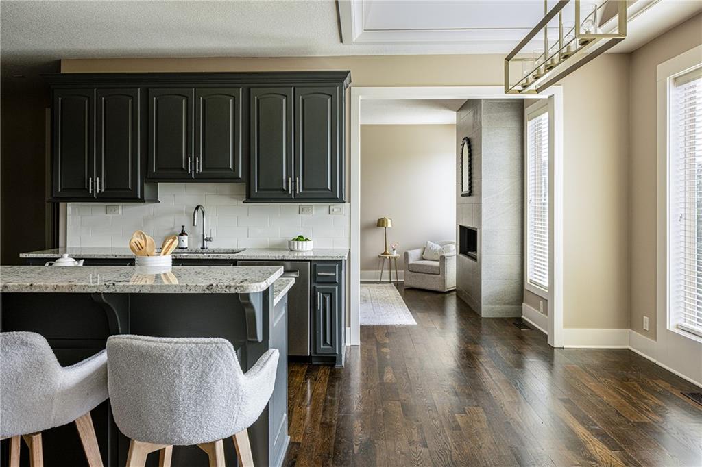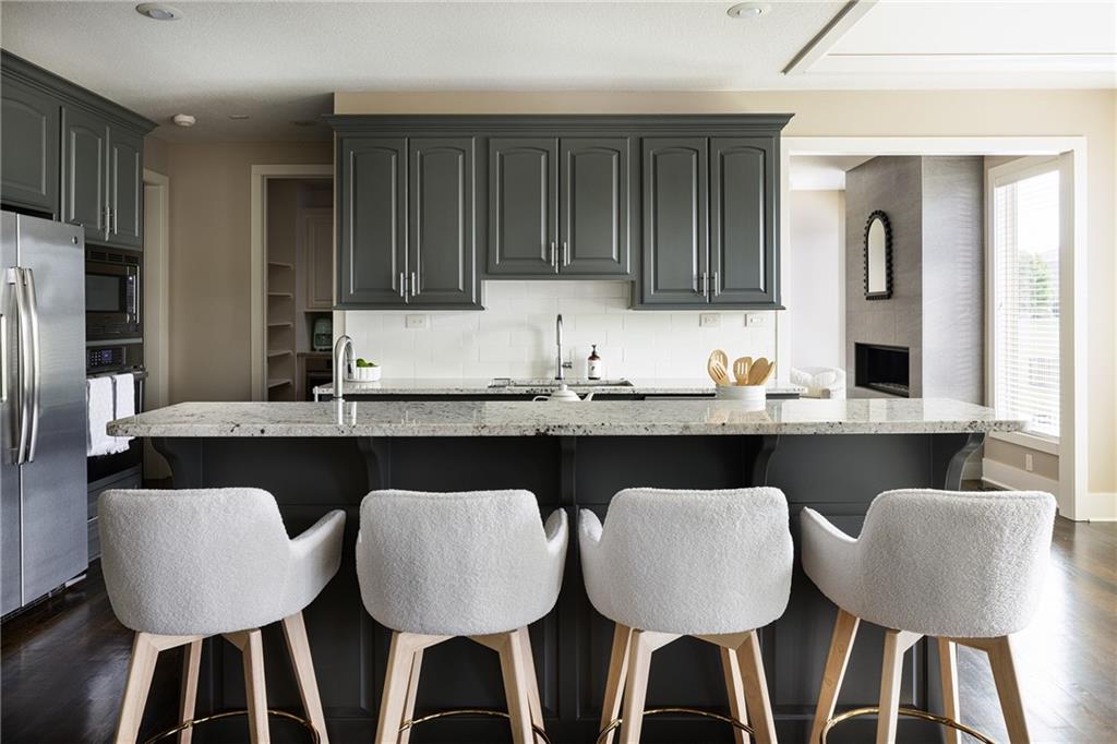From the moment you step inside, the soaring ceilings, gleaming hardwood floors, a stone fireplace & floor-to-ceiling windows welcome you with natural light & elegance. The centerpiece of the main level is the custom-designed, eat-in kitchen—a chef’s dream. Outfitted w/top-of-the-line Bosch appliances, custom cabinetry, granite countertops, eat-in kitchen & a spacious walk-in butler’s pantry with a full-size convection oven, this kitchen blends high-end function w/timeless style.It flows seamlessly into the expansive living room & open-concept formal dining room, creating the perfect flow for entertaining. Just off the kitchen is the hearth room—your own private sanctuary w/a second fireplace. The main level primary suite is a luxurious retreat, featuring a spa-like en suite w/an oversized 65-gallon jetted tub, large walk-in shower & a HUGE walk-in closet. Large mud room located off 3-car garage showcasing built-in cabinetry for added storage. Upstairs, you’ll find three generously sized bedrooms, a loft space perfect for work or play & beautifully appointed bathrooms. The real fun begins in the basement! The fully finished daylight basement features the fifth bedroom, two additional non-conforming bedrooms, a private gym & a large media/family room. The abundant storage space keeps everything tucked away & organized. Don’t miss the lower level kitchen/bar an entertainer’s dream that features custom cabinetry, Bosch appliances, granite countertops & a custom bar. Perfect for entertaining or long term guests. Additional upgrades include air scrubbers, a fenced-in, Landscape architect-designed backyard w/a covered, customized, fully screened-in porch w/composite decking for year-round outdoor enjoyment. Great highway access tucked into lovely neighborhood and backs to greenspace!