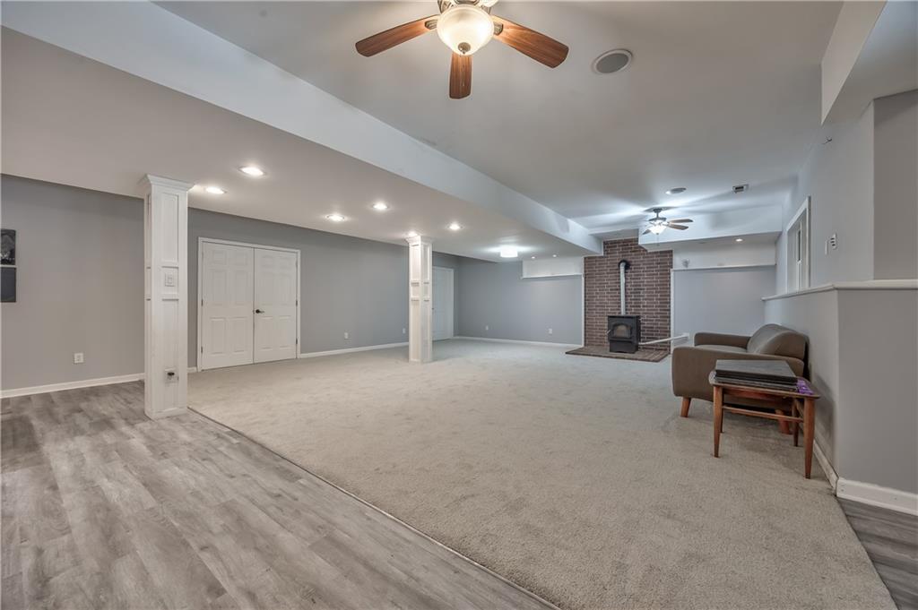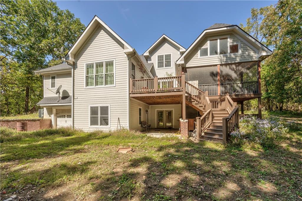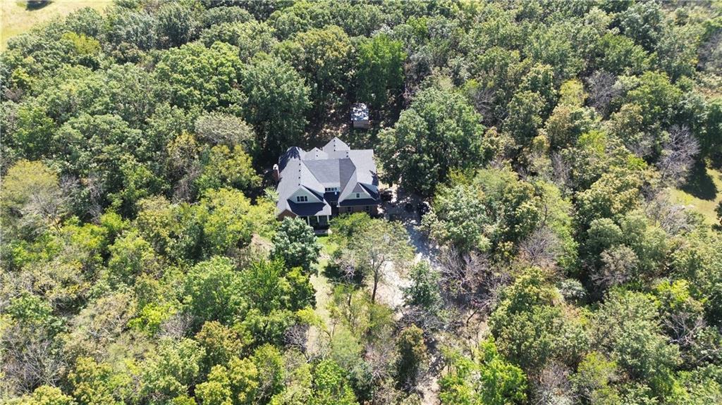 A rare opportunity to own a truly stunning retreat on 5 acres of wooded beauty just minutes from Lone Jack! From the moment you step inside, you’ll be greeted with soaring ceilings, walls of windows, and forest views that bring the outdoors in. The great room and sunroom flow seamlessly together, centered by a cozy fireplace—perfect for gatherings year-round. The chef’s kitchen is designed to impress with granite counters, hardwood floors, double oven, walk-in pantry, and custom spice cabinetry. The main-floor primary suite is a dream with his-and-hers walk-in closets and a spa-like bath. Every bedroom in this home offers a walk-in closet, giving everyone their own private retreat. Convenient main-level laundry adds to the ease of daily living. The finished walkout lower level is a showstopper: a massive rec room with a brand-new kitchenette, bedroom, bath, built-in sound system, and it’s even plumbed for a full kitchen—endless possibilities for entertaining or multigenerational living! Enjoy peace of mind with major updates: new roof (2021), basement HVAC & furnace (2022), main-floor A/C (2024), newer water heater, softener, and sump pump. Outside, relax on the deck or screened porch overlooking your private trails through the woods. With 3-sides brick, hardy board siding, and easy access to 50 Highway, this property combines timeless quality with the privacy of country living—all less than 10 minutes from town. Don’t miss your chance—this one won’t last!"