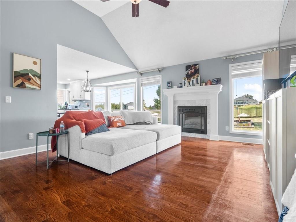 This 3-bedroom, 3-bath home sits on a peaceful cul-de-sac, just minutes from shopping, dining, and highways. The main floor offers a bright family room with fireplace, an updated kitchen with white cabinets, under-cabinet lighting, and beautiful counters, plus the convenience of main floor laundry. Two bedrooms share a full bath, while the spacious primary suite includes its own bath and walk-in closet. The finished lower level adds a second family room, full bath, and walk-out access to the oversized two car garage. Perfect for entertaining, home office space, or movie nights. Enjoy the outdoors with a newer deck, patio, fenced backyard, and fresh landscaping. Recent updates include a new heat pump, interior paint, storm door, updated lighting, hardwood floors, carpet, and a hot water heater tune-up.