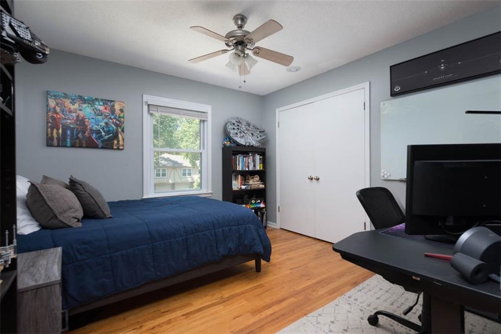 This house has ALL the mid-century modern charm you could want! Warm and welcoming, with a fantastic floor plan, in a nice quiet neighborhood with mature trees. Gorgeous colors throughout, with stylish light fixtures. Formal living room and dining room - a bright open kitchen with quartz counters, roomy pantry, and a tile floor leading to the world's coziest family room, with soaring ceiling, big brick fireplace, hardwood floors, and double doors out to a great patio and fenced yard! BRAND NEW ROOF and new carpeting here for the new owners! Master bedroom has hardwood floors, a cedar accent wall, ceiling fan, a double closet, and a newly updated en suite bathroom! Second and third bedrooms are both hardwood with ceiling fans and ample closet space. Second full bathroom is also newly updated. Downstairs, plenty of unfinished space for storage. This home is super convenient to everything KC (and nearby NKC!) have to offer, with easy trail access, and has great proximity to lots of shopping and dining, and highly-rated NKC Schools!