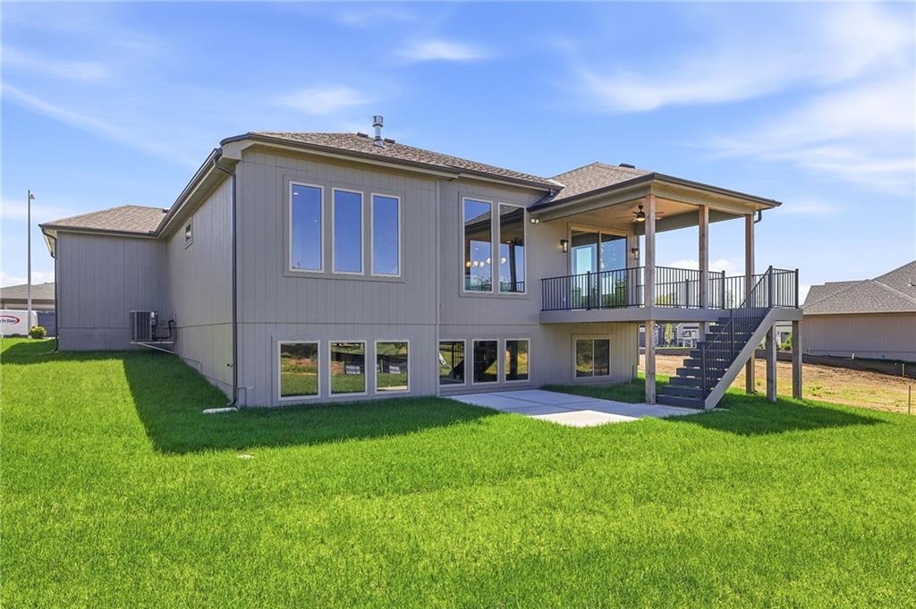 Stunning new Whitney Modern Reverse plan by L & G Homes. The designer finishes will wow you the moment you walk through the front door! Open concept plan includes hardwood floors and tile throughout the entire first floor. Kitchen boasts large eating island, walk-in pantry, custom cabinetry, solid surfaces and stainless appliances. Master suite includes wood feature wall, custom trimmed walk-in closet, oversized master shower, double vanity and direct access into the laundry room. Additional first floor bedroom with access to a full bath. 8 foot doors throughout the main floor. Daylight lower level with family room, wet bar, fireplace/built-in's, 2 additional bedrooms, full bath and a bonus room that could be utilized as an office or craft room. Enjoy the covered deck and lower level patio. Home includes lawn irrigation. Just a short walk to the community walking trails. Home is located in Woodland Trails, an outdoor lifestyle master planned community featuring miles and miles of paved walking trails, resort style pool, playground, sports field and fishing pond with fishing dock. Don't miss this opportunity to make this beautiful house your new home!