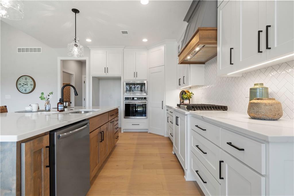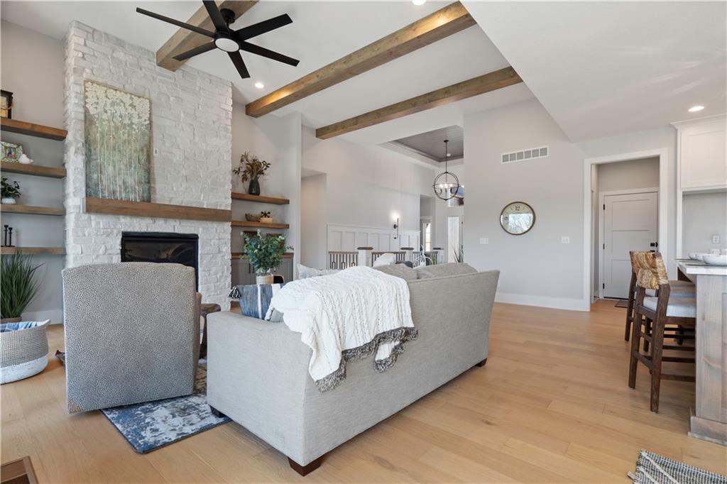 Nestled in the brand-new Woodland Oaks Subdivision, this stunning reverse 1.5-story home, built by Walker Custom Homes, is designed for luxury and functionality. Step inside to find soaring 12-foot ceilings and a cozy fireplace in the spacious Great Room, where abundant natural light creates a warm and inviting atmosphere. The gourmet kitchen features a center island, plentiful cabinetry, and a large walk-in pantry—perfect for everyday living and entertaining. Retreat to the elegant primary suite, complete with a freestanding soaking tub, oversized walk-in shower, dual vanities, and an impressive walk-in closet. A second main-level bedroom and full bath offer flexibility for guests or an in-home office, while the convenient laundry room is located just off the garage entrance. Downstairs, the expansive walk-out lower level is built for entertaining, boasting a large rec room with a wet bar, two additional bedrooms, a storm shelter, and generous unfinished storage space. Living in Woodland Oaks means enjoying access to premier area amenities, including nearby Lake Jacomo and Legacy Park, with its state-of-the-art community center, amphitheater, disc golf course, miles of walking trails, and sports facilities for all ages—all just steps from your front door. Home is under construction and final pricing is subject to change. Pics of former model. The specification sheet will outline planned finishes for this property, and supersede any details, photos, drawings, or depictions used for marketing purposes on this listing.