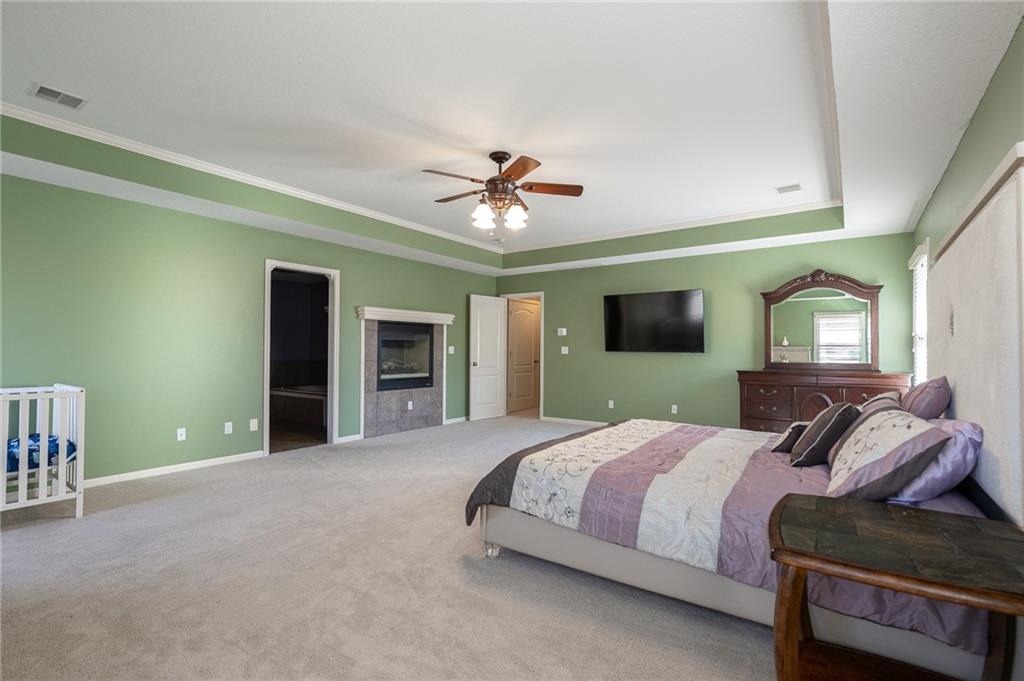 Motivated Sellers! Welcome to this inviting home that perfectly blends comfort, style and function. Designed for both relaxation and connection, the spacious layout offers open living areas ideal for entertaining or everyday life. The kitchen features stainless steel appliances, a breakfast bar, and a walk-in pantry, opening to a bright dining area where family and friends can gather. The primary suite is a peaceful retreat with its own fireplace, luxurious en-suite bath, large walk-in closet, and convenient built-in ironing station. The cozy great room fireplace adds warmth and charm with tons of windows, while the finished basement provides additional space with a theatre room and large island and wet-bar. Step outside to enjoy a large fenced backyard, stone patio with built-in benches for entertaining. The extended three car garage provides extra storage or room for a boat. Major updates include exterior painted (2025), exterior trim painted (2026), roof (2020), carpet (2019) and water heater (2023). Don't miss your chance to make this beautifully maintained home yours.