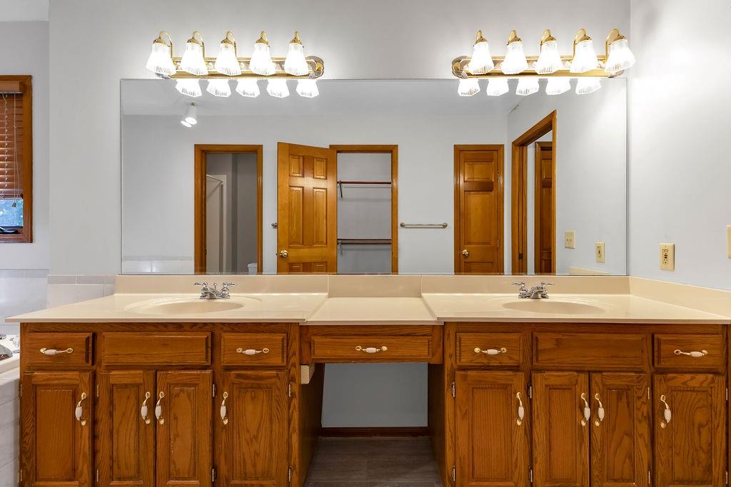 This beautifully maintained 1.5-story home offers an abundance of space and flexibility in a sought after neighborhood. The main floor boasts a warm living room with a brick fireplace, a formal dining room, and a spacious kitchen with a breakfast area. You’ll love the oversized primary suite with a tray ceiling, a spa-like bathroom, plus the convenience of main-floor laundry, a half bath, and a 2 car garage. Upstairs, find three comfortable bedrooms and a full bath, while the finished basement is made for fun - featuring a large rec room, full bath, wet bar, and a non-conforming bedroom or exercise room, along with plenty of storage. A brand new roof, security system, and all electric living finish off the amazing features of this home. With multiple living areas and thoughtful details throughout, this home is perfect for both entertaining and everyday living.