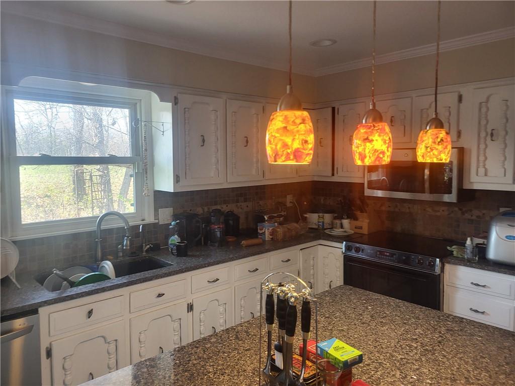 Lovely well maintained home on ten slightly sloping acres with some trees. Close to the city, but out in the country. schools close by for the kids. security system for extra safety in a lovely location. large bedrooms freshly painted. three car garage two floor level one in basement. two HVAC to keep you warm in winter cool in summer. over 3,900 sq ft of living space. large open kitchen with island. next to kitchen wide open large front room. In addition a large 4,800 sq ft outbuilding. the house sits way back from hwy so very quiet.