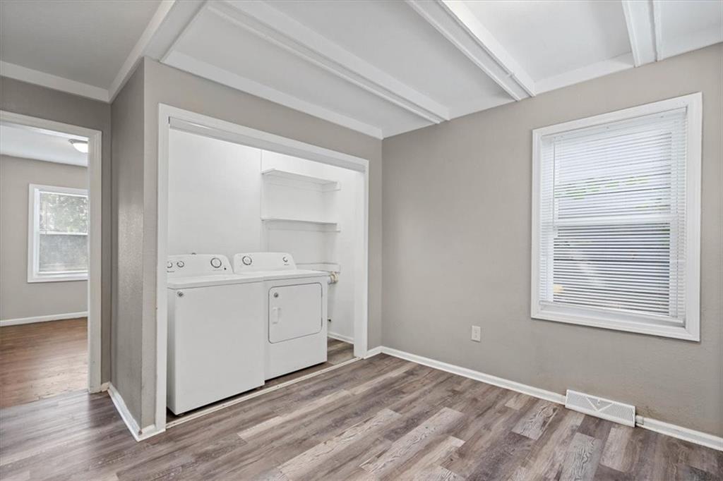 Perched on a quiet hillside in Kansas City’s historic Indian Mound neighborhood, this updated 1950s bungalow blends charm and practicality. Fresh exterior paint, a classic stone retaining wall and mature trees create great curb appeal. Step inside to find sunlit rooms with crisp neutral paint, bright trim and rich wood floors throughout the living and bedroom spaces. The updated kitchen offers abundant cabinetry, marble-look countertops, gas range and an adjoining dining area with exposed beams and a dedicated laundry nook (washer and dryer included). Bedrooms feature ample closet space, while the remodeled bath showcases contemporary tilework and updated fixtures. Outside, a large backyard with a concrete patio and shaded perimeter provides a private retreat and plenty of room for gatherings. 5508 Saida Ave offers easy access to Kessler Park, Cliff Drive and quick connections to I-435 and US-71, making it simple to get anywhere in the metro. Whether you’re a first-time buyer or an investor seeking a turn-key rental, this home’s location, updates and layout make it a strong value.