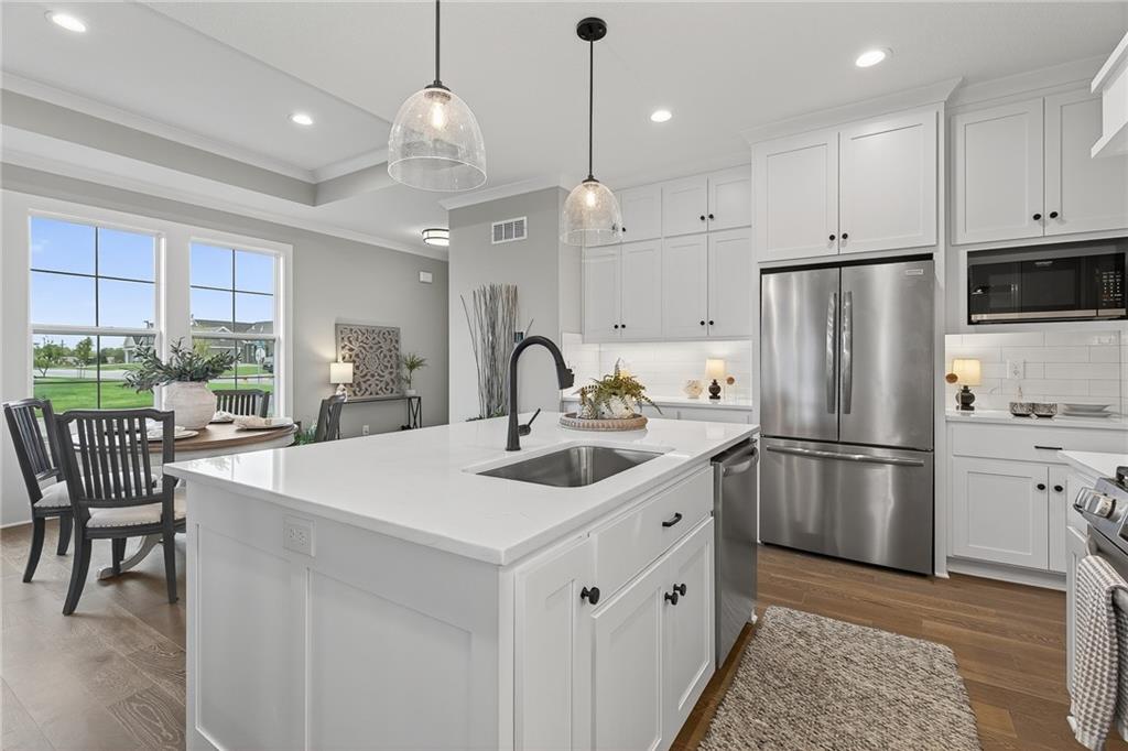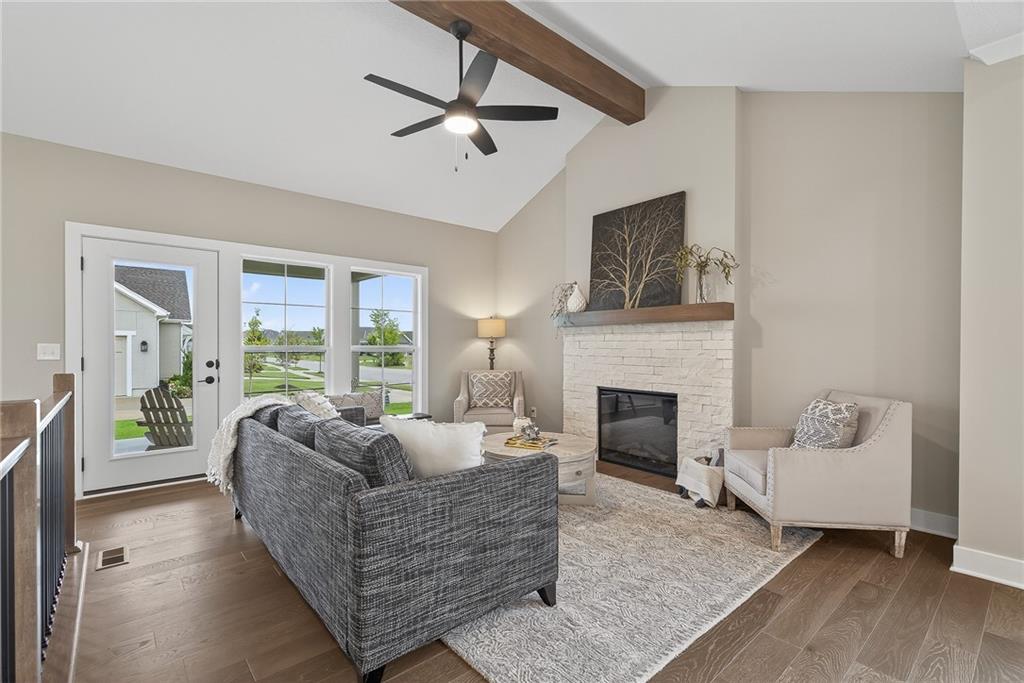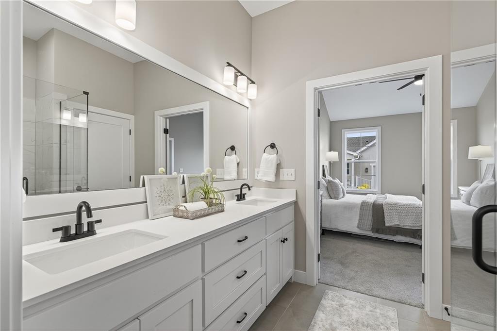 NEW MODEL HOME NOW AVAILABLE!!!!! Lambie Grand Luxury Twin Villa. This Newport MODEL HOME located on lot 59R is DECKED OUT TO THE NINES. Come find out what luxury villa "Rightsized" life is like. This 3 bedroom, 3 bath home features two bedrooms on the main located floor, a private bedroom en-suite in the lower level along with a full bath, linen closet, and private family room for guests. Vaulted ceilings in both the great room and Primary bedroom SHOWCASE STAINED BEAMS, ceiling fans, hardwood floors throughout the main floor with bedrooms being carpet. Quartz countertops throughout home. Double vanity, oversized covered patio, elegant kitchen hood, pantry and so much more. GENEROUS LOT! (Lot 59R) Don't miss out on this opportunity to make this GORGEOUS model home yours today!!!