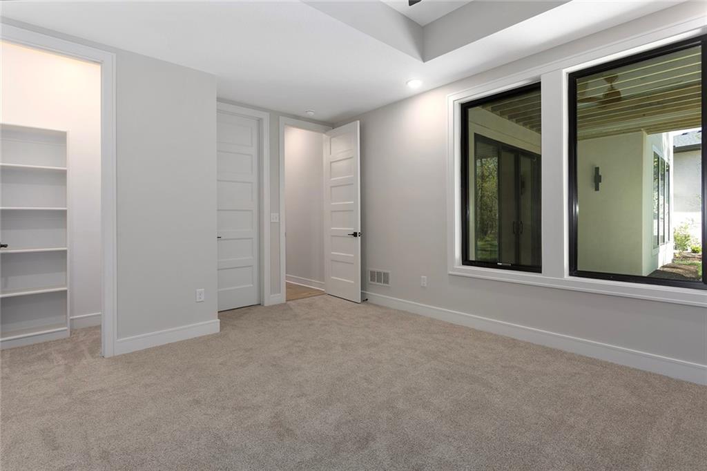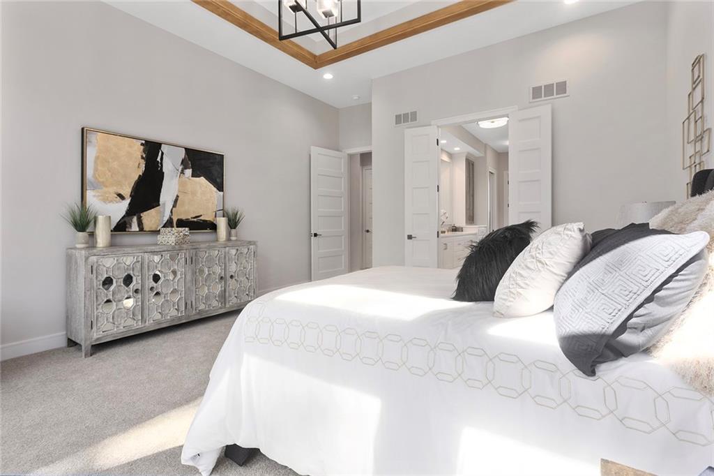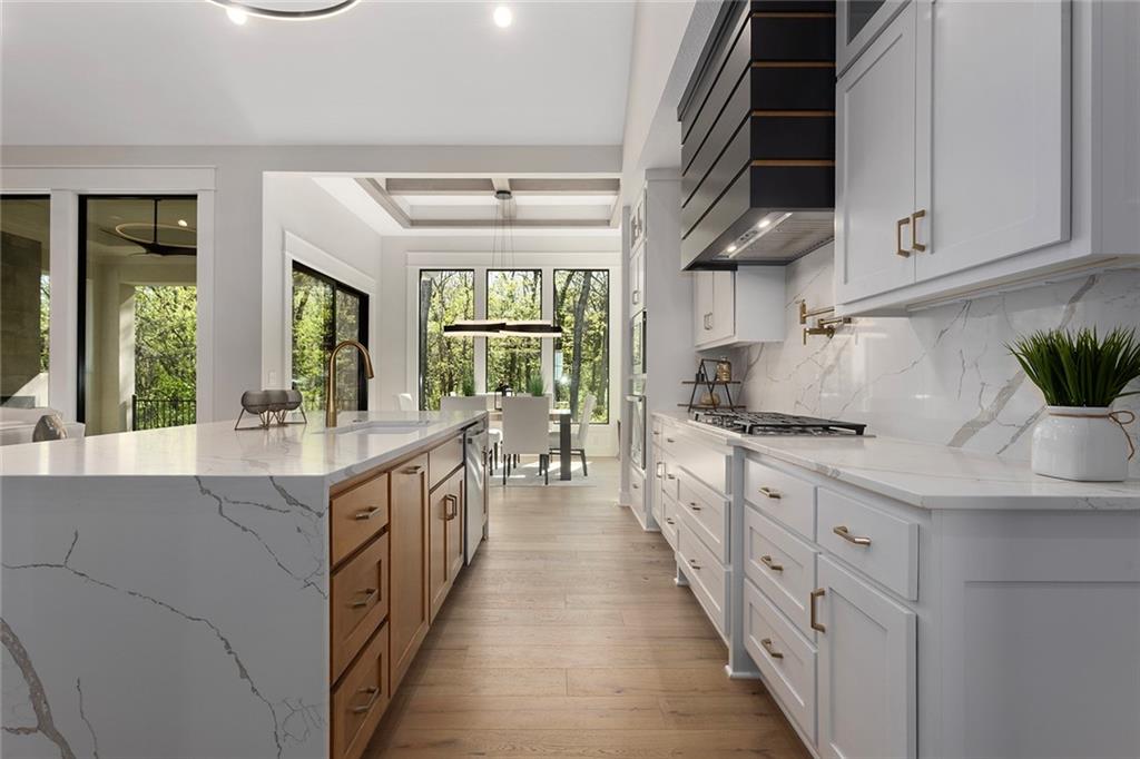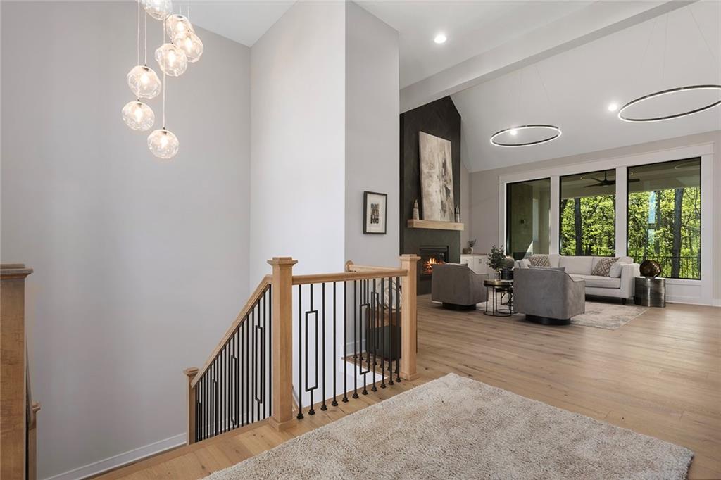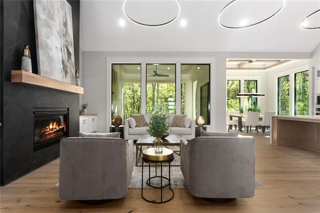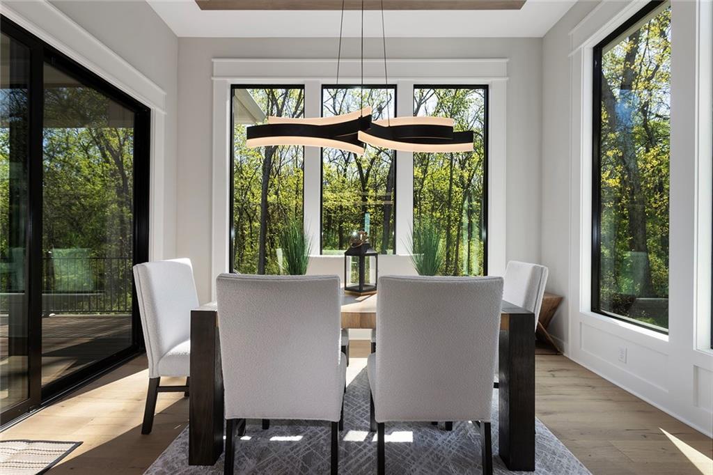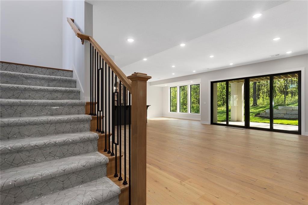Stunning Reverse 1.5 Story on Heavily Wooded Walk-Out Lot. This exceptional new plan blends open, light-filled living with thoughtful design for both entertaining and privacy. The main level offers two private bedroom suites, each with its own bath. A vaulted great room and dining area feature walls of windows that flood the home with natural light and frame serene wooded views. Oversized 8’ sliding doors extend the living space to a covered lanai with fireplace and ceiling fan, creating the perfect indoor/outdoor retreat. The luxurious primary suite showcases wooded views and a spa-inspired bath with a freestanding tub, zero-entry shower, and floating custom cabinetry. The finished walk-out lower level boasts 10’ ceilings, three additional bedrooms, and a spacious rec room with entertainment center and decorative niches. The full bar is equipped with sink, beverage center, and quartz countertops—ideal for hosting. An oversized flex suite with built-ins and beverage center offers endless possibilities: gym, yoga studio, or media room. Located in sought-after Timberstone Ridge, this home combines luxury finishes, versatile spaces, and breathtaking views—an incredible opportunity for refined living