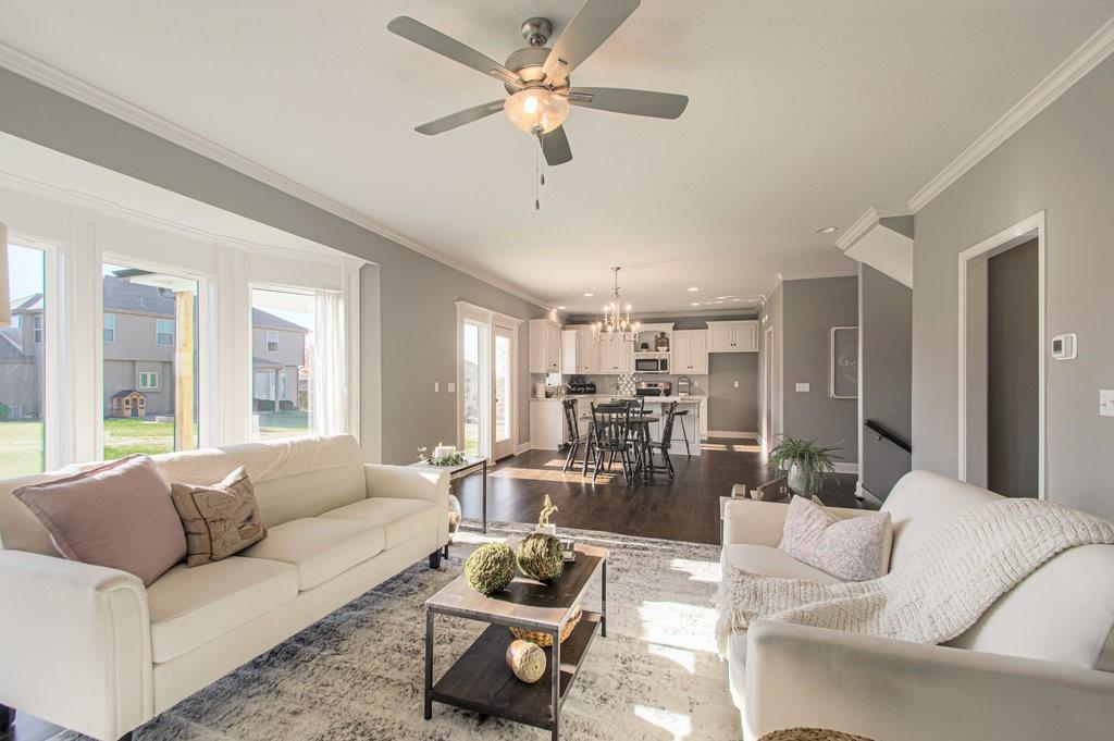 Clay Meadows welcomes back the gorgeous "DUNCAN" by Robertson Construction! A 4 bedroom, 2.5 bath, 3 car garage with a WALKOUT Basement! This popular 2-Story with an Open Layout has beautiful detail throughout! The Main Level offers lots of natural light with Floor to Ceiling Windows, Kitchen Island, Solid Surface Countertops, Walk-in Pantry, Half Bath, Formal Dining that could easily be converted into a home office and Breakfast area. The 2nd Level has a fantastic Master Suite with a HUGE Master Closet and luxurious Master Bath, 3 more bedrooms and one Full Bath. The Laundry Room is conveniently located on this level with access from the Master Closet. Oversized front porch. Subdivision pool. Located in the highly-rated Liberty School District and close to shopping, entertainment, local amenities and the Historic Downtown Liberty Square. NO KCMO E-TAX!