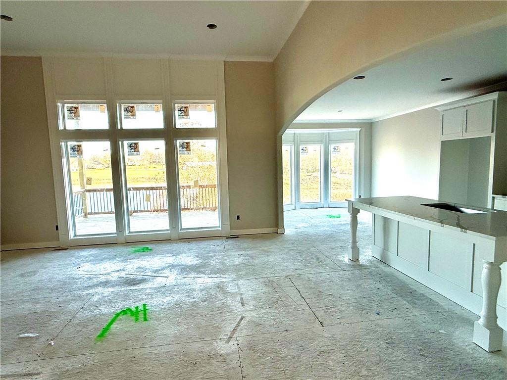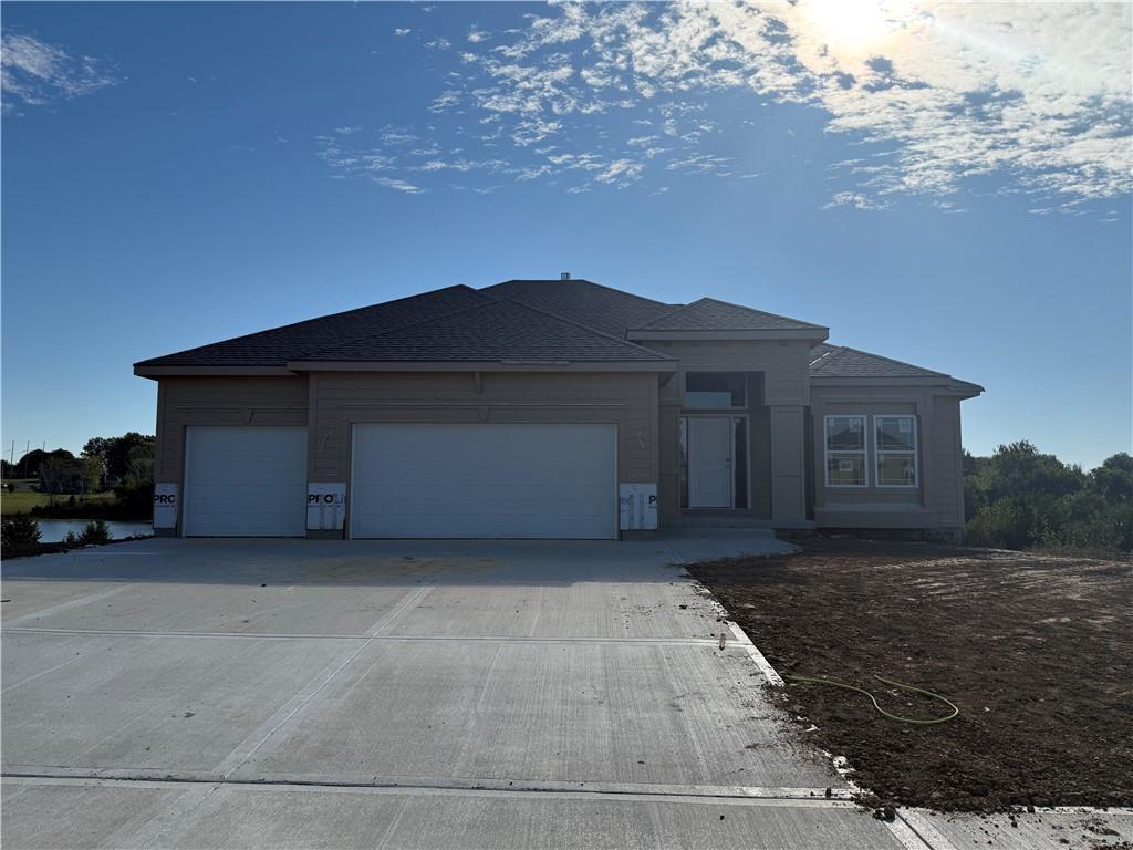 The "NOAH" by Robertson Construction! Positioned on a PREMIUM LAKE-BACKED LOT offering an outstanding view! This Stunning Reverse 1.5-Story offers 2822 sq. ft. with a beautifully designed living space and exceptional detail throughout! Floor-to-Ceiling windows overlook the backyard creating a seamless connection between indoor and outdoor living! The open concept design features a Corner Stone Fireplace, Real Hardwood Floors, Private Master Suite with a Luxurious Bath, Walk-in Shower, Huge Soaker Tub and access to the Laundry Room which is complete with a utility sink. Bedroom 2 is also on this level, ideal as a guest room or home office and 2nd Full Bath. The gourmet Kitchen is well designed with Custom Built Cabinets, Solid Surface Countertops, and Walk-in Pantry. The oversized Deck has easy access from both the Breakfast Room and Master Suite. A Finished Lower Level WALKOUT offers more Floor to Ceiling Windows, WET BAR with Beverage Fridge, 2 more Bedrooms, 2 Baths, Family Room and a GENEROUS AMOUNT OF STORAGE in 2 STORAGE ROOMS. Patio at the Walkout offers another great view leading to the backyard.