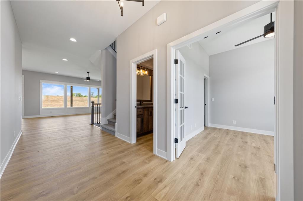 MOVE-IN READY & AVAILABLE FOR QUICK CLOSE! The Inglenook by Inspired Homes is a beautifully designed 2-story home with a charming Craftsman-style exterior, shake siding, and an oversized front porch perfect for welcoming guests. Located in the desirable Pryor Ridge community, this home features 5 bedrooms, 3.5 bathrooms, and a rare oversized 3-car garage that easily fits a truck or large SUV. Situated on a spacious, flat lot, the home includes a large covered patio ideal for outdoor living and entertaining. Inside, enjoy an open-concept layout with soaring 10’ ceilings, oversized windows, and rich design touches throughout. The flex room off the foyer with glass French doors and a walk-in closet is perfect for a home office or optional main floor guest suite. The gourmet kitchen is a chef’s dream, featuring quartz countertops, built-in stainless appliances, a gas cooktop, under-cabinet lighting, upgraded fixtures, and a large center island. Tucked behind the kitchen, you'll find an oversized walk-in pantry, coat closet and custom drop-zone boot bench. The expansive great room and dining nook with a large windows flood the main floor with natural light! Upstairs, the luxurious primary suite boasts a spa-like shower with 2 shower heads, built-in vanity, and a huge walk-in closet. Three additional large bedrooms each include walk-in closets, plus two full baths, a second-floor laundry room, and a large linen closet. The unfinished basement offers endless potential, already stubbed for a future bathroom, wet bar, egress well for an additional bedroom, and additional living space. Pryor Ridge offers top-tier community amenities: junior Olympic-size pool, playground, pickleball and basketball courts, walking trails, off-leash dog park, and open green space—all just minutes from shopping, dining, entertainment, and major highways!