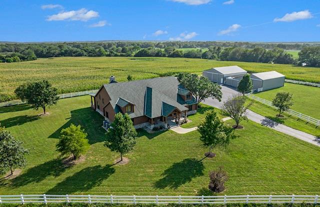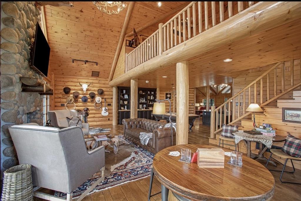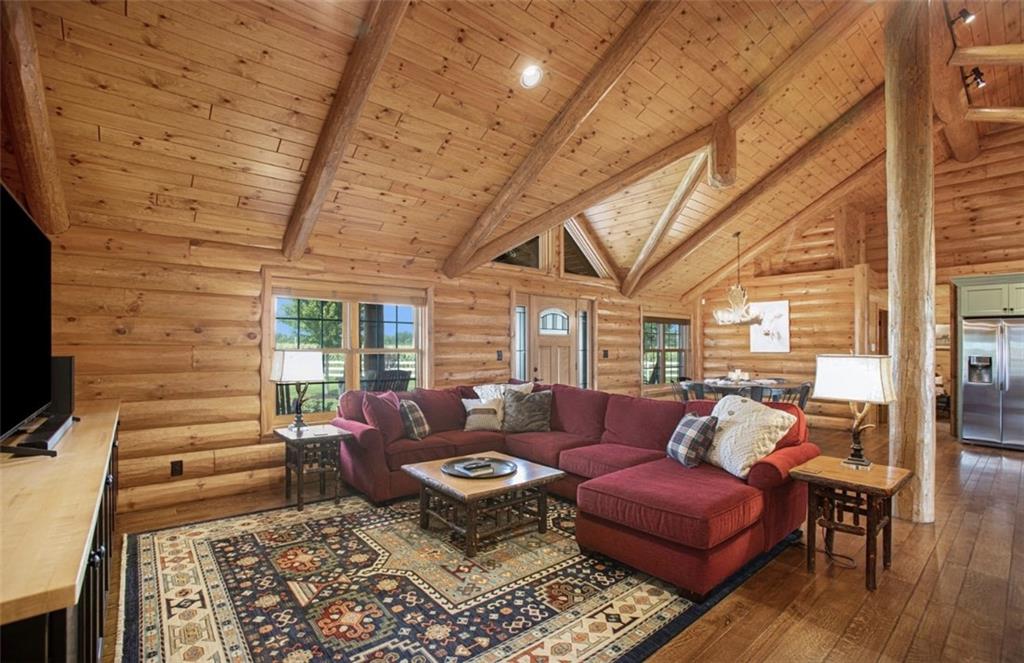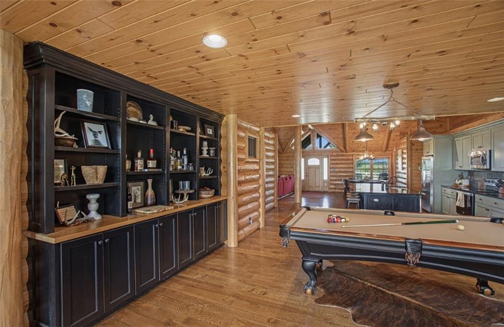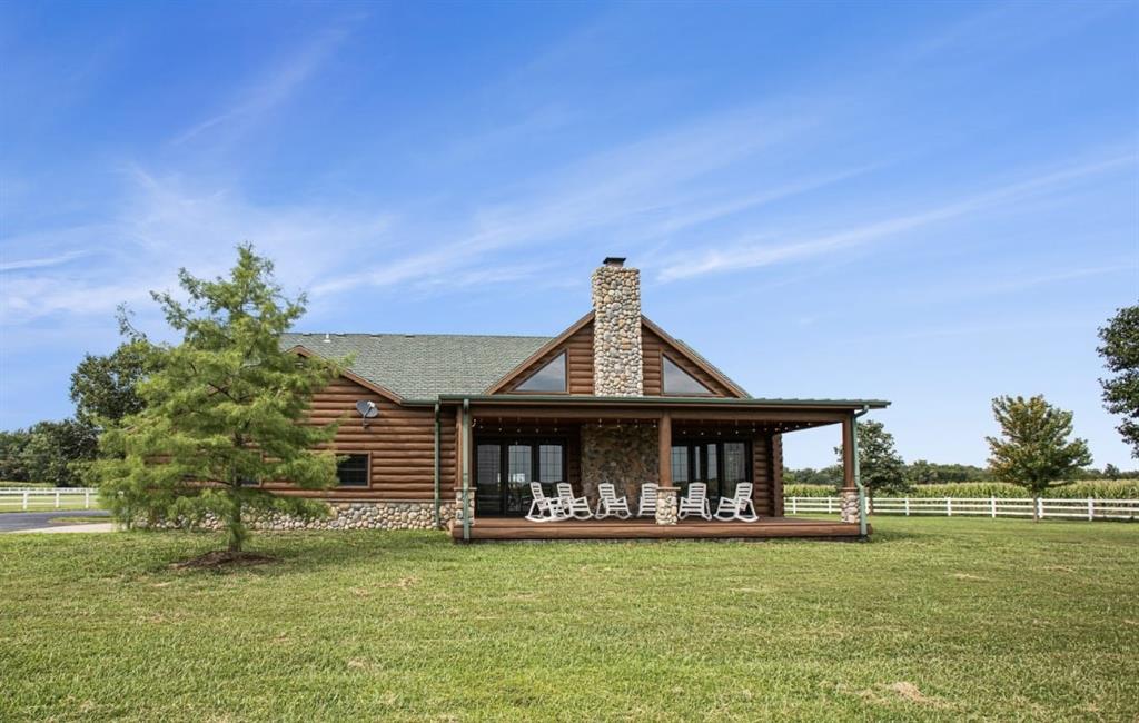 Discover the charm of rustic living at 19295 Highway 52 in Pleasanton, KS. This beautiful log cabin-style home is set on a picturesque 15-acre parcel, offering a perfect blend of natural beauty and modern comfort. The residence features 4 bedrooms and 3 bathrooms, spread over 3,149 square feet of living space, each corner thoughtfully designed with natural wood details and expansive windows that fill the home with light. Inside, enjoy the open-concept layout that seamlessly connects the living, dining, and kitchen areas—ideal for both everyday living and hosting gatherings. The kitchen, equipped with modern amenities, provides a functional space for culinary enthusiasts. The expansive acreage surrounding the home presents endless opportunities for outdoor enjoyment. The land has a beautiful tree line to the west, offering privacy and a sense of seclusion, yet ample open space invites recreational activities. Additional structures include a 40x56 pole barn, a 42x56 barn, and a 8x12 shed, providing versatile options for storage or hobby uses. This log cabin retreat in Pleasanton is more than just a home; it’s a lifestyle choice, inviting you to experience the tranquility and beauty of rural living with the convenience of modern amenities. Explore the potential of this unique property today.