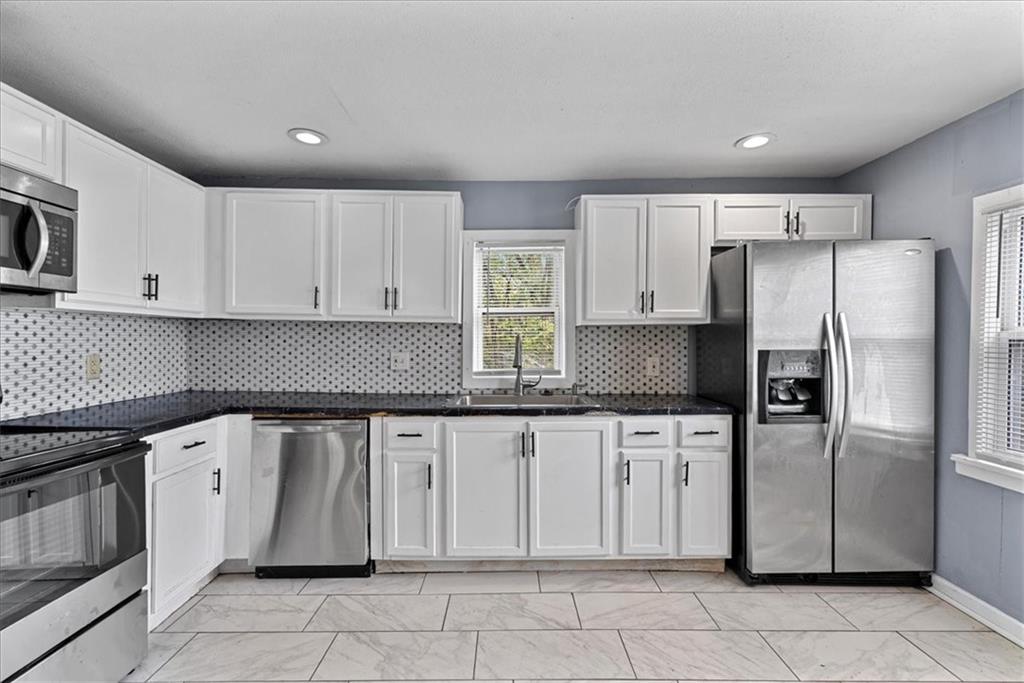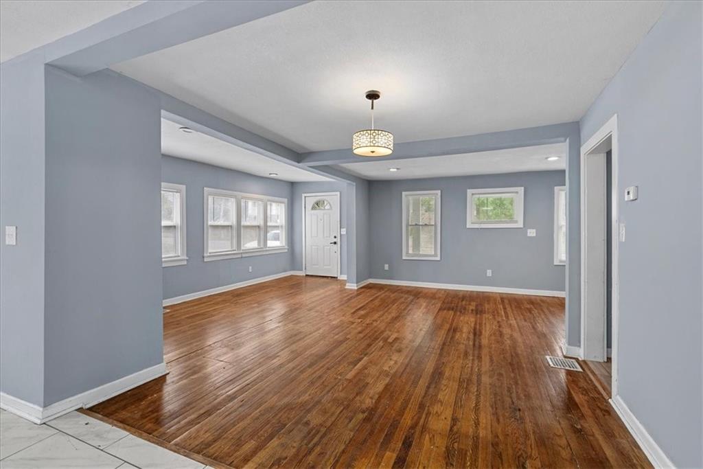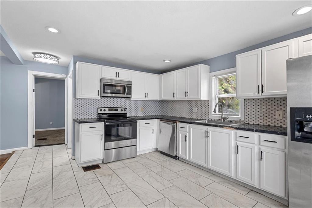 Motivated seller. New sewer line from stack to City Main and 5 YEAR OLD Roof, HVAC and Hot water tank. ALL appliances stay including the washer and dryer. There is a noticeable slope in the living room floor but there are no foundation issues with the home. You are able to see every wall in basement. Great 1.5 story home that is ready to move right in to. Main lever bedroom w/ bathroom. hardwood floors, open kitchen, large driveway with garage parking and much more. Enjoy the privacy of the backing up to green space! Come explore ASAP.