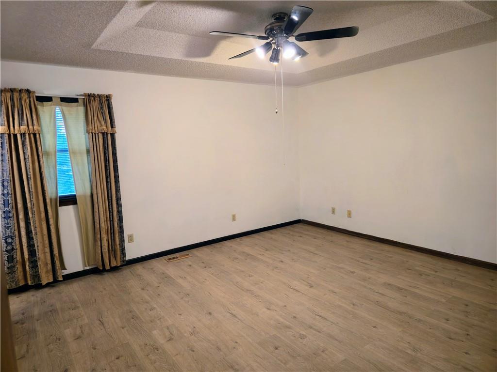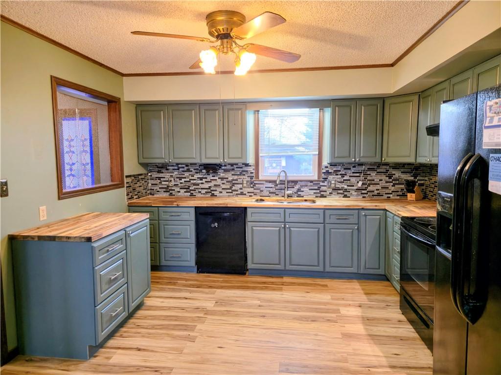 Located in the Heritage Hills subdivision, this ranch-style home sits on a 1/3-acre lot and features three bedrooms and two bathrooms. The main living areas upstairs boast new flooring, while the living room is enhanced by a vaulted ceiling. Kitchen appliances are included with the sale. Additional highlights include a two-car garage, built-in cabinets in the dining room, and a deck off the dining room that leads to the spacious backyard. Solar panels offer added energy efficiency.