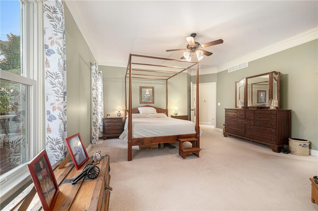Discover this one-owner custom-built home nestled on 7.3 picturesque acres with a beautiful 1.5 acre shared pond. Featuring 4 bedrooms and 3.5 baths, this home is designed with both comfort and function in mind. The main floor features a spacious primary suite complete with a private sitting room, a well-appointed kitchen with quartz countertops, stainless steel appliances, hearth room, and Anderson windows that fill the home with natural light. Convenient main floor laundry adds ease to daily living. Upstairs, you'll find generous-sized secondary bedrooms along with a versatile loft space perfect for an office, playroom, or second living area. The unfinished basement, stubbed for a bath, provides endless opportunities for expansion. Outside, a 40x50 shop with two 12' doors, concrete floor, and electricity offers ideal space for hobbies, storage, or a small business. This property combines peaceful country living with modern amenities.